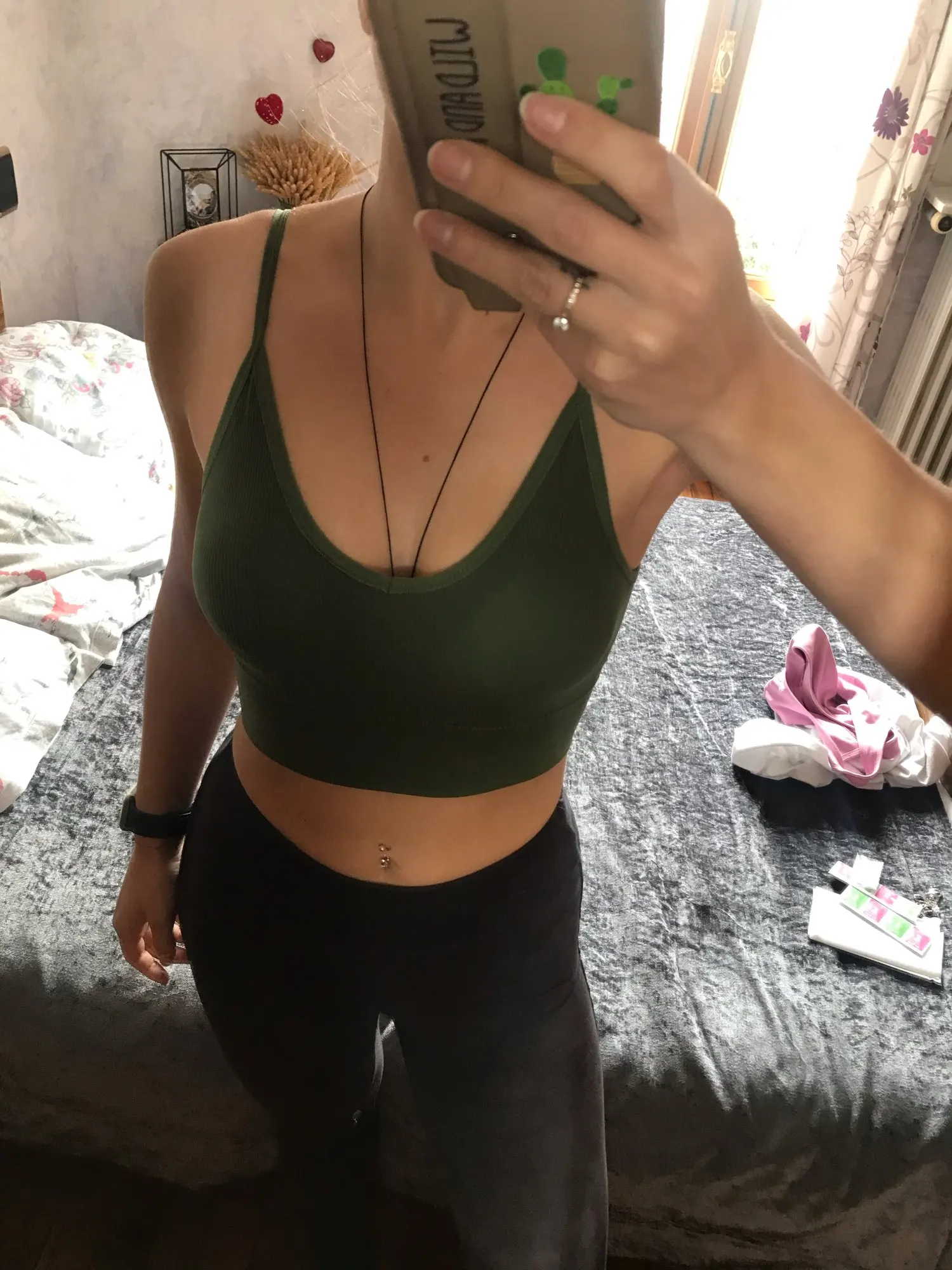 Доставка быстрая. Цвет немного отличается от фото, более насыщенный. Качество 3/5. Размер великоват на параметры 83 обхват груди, 70В. В целом неплохо. На фото есть сравнение с другим зелёным топом что заказывала у другого продавца.