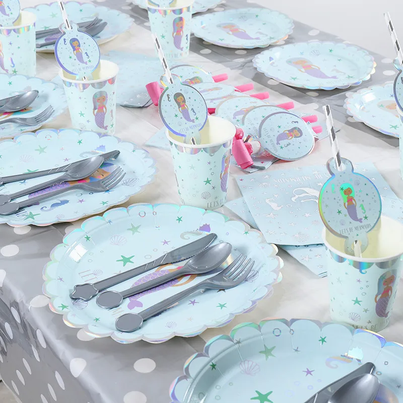 Новое одеяло хвост русалки из принцессы тема День Рождения украшения комплект детей Baby Shower вечерние одноразовые набор столовых приборов в виде русалки для девочек вечерние поставки