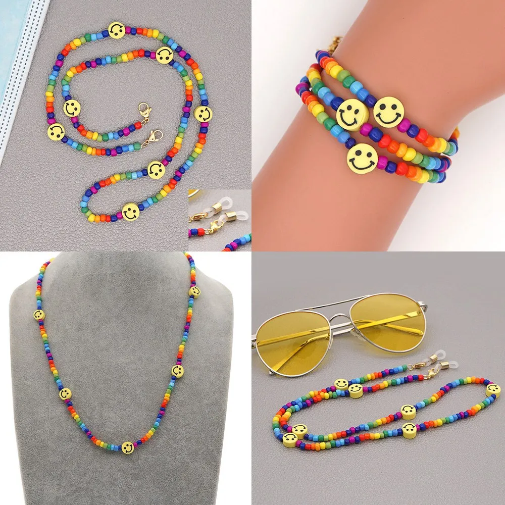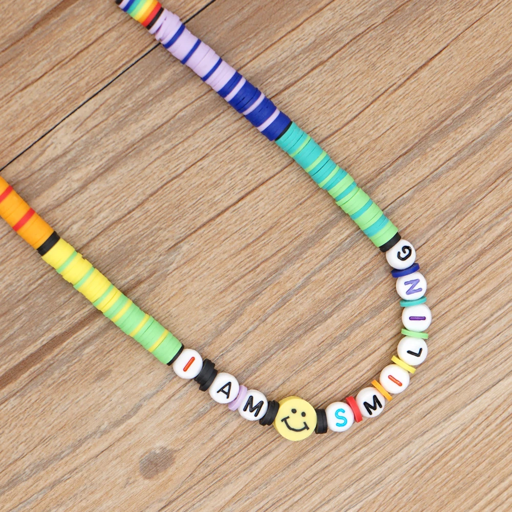 Go2Boho Женская цепочка для маски, ювелирные изделия в стиле бохо, цепочки для очков, Радужное ожерелье с буквами, ожерелье со смайликом, модные ожерелья 2020