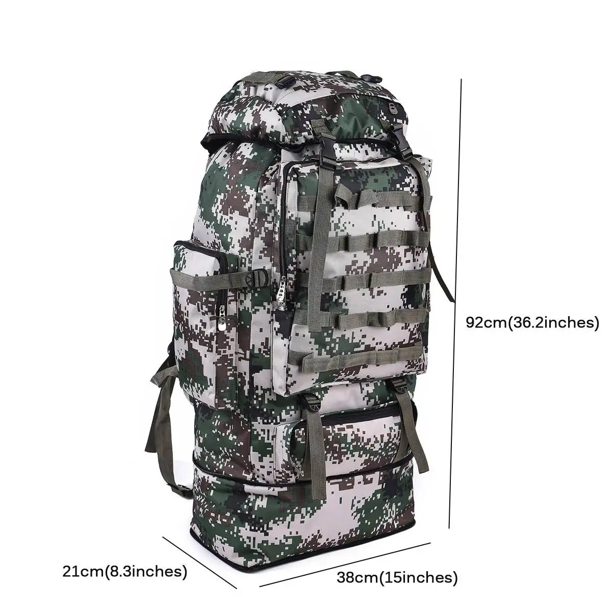 Спецификация:Материал: нейлонС или без дождевой крышки: нетФункция: дышащая, водонепроницаемая, износостойкая, ударопрочная, осветляющаяСтиль: коричневый камуфляж, серый камуфляж, цифровой камуфляж, камуфляж листьев, камуфляж джунглей, камуфляж 007Особенности:-Использование водонепроницаемой ткани, сильный водонепроницаемый эффект, износостойкость и устойчивость к царапинам.-Плечевой ремень с многожильным швом предназначен для прочности и прочности.-Удлиненный пояс, прочная Пряжка, простота в использовании.-Передний карман на молнии предназначен для размещения предметов.-Ткань плотная, износостойкая и износостойкая.-Он прост в использовании, удобен и вместителен. Подходит для кемпинга на открытом воздухе, путешествий, пеших прогулок, альпинизма и других удобных и практичных.Посылка включает в себя:1 х Рюкзак