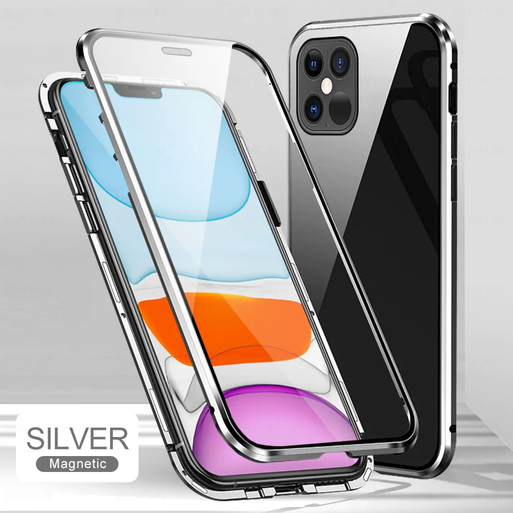 Роскошный двухсторонний стеклянный металлический магнитный чехол для iPhone 12 Pro MAX, чехол для телефона, защитный чехол с полной защитой на 360 градусов, чехол для iPhone 12, 12promax