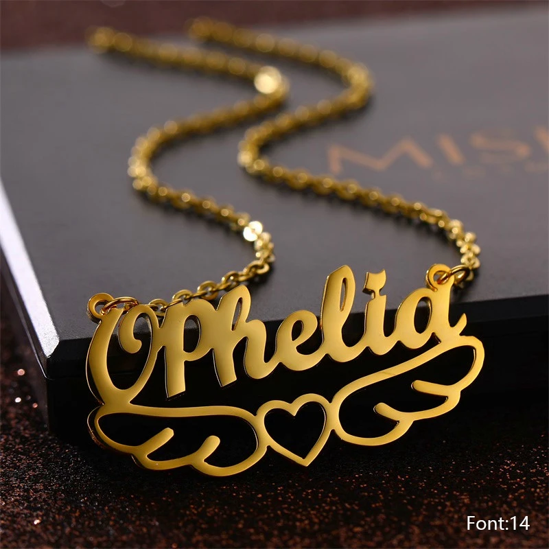 Ожерелье с именем на заказ, звено из нержавеющей стали, крылья анге...
