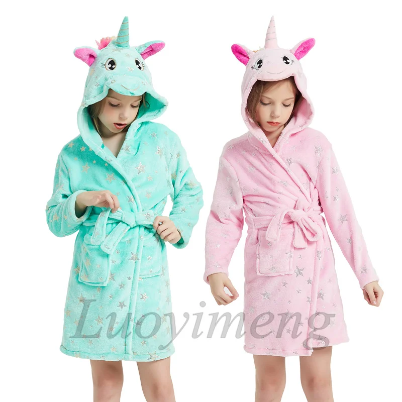 Зима 2020, банный халат кигуруми со звездами и единорогом для девочек, детские пляжные полотенца, банные халаты для детей, одежда для сна с единорогом, халаты с длинными рукавами для мальчиков