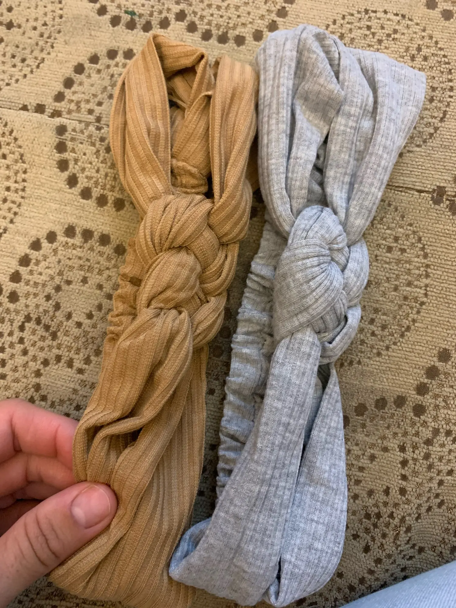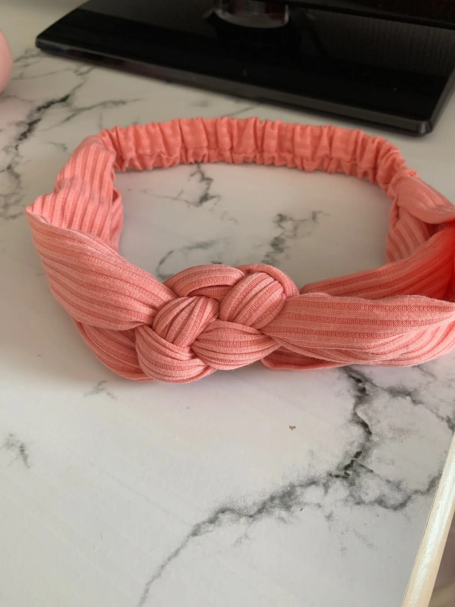Повязка на голову вязаная, с узлом, однотонная, широкая