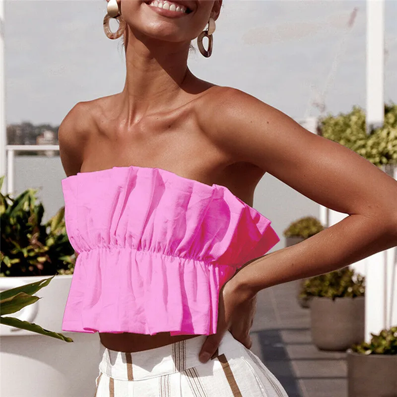 Женские Элегантные Топы с открытой спиной и рюшами, женские повседневные сексуальные однотонные вечерние ничные укороченные топы без бретелек на шнуровке, уличная одежда