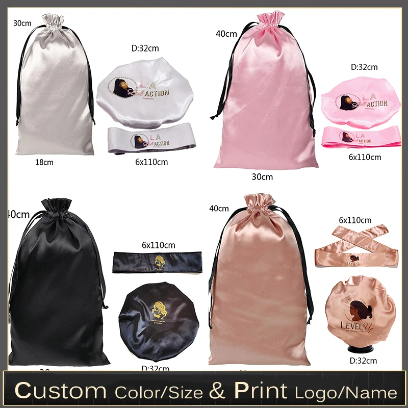 Шелковые атласные пакеты для упаковки волос с логотипом на заказ, п...