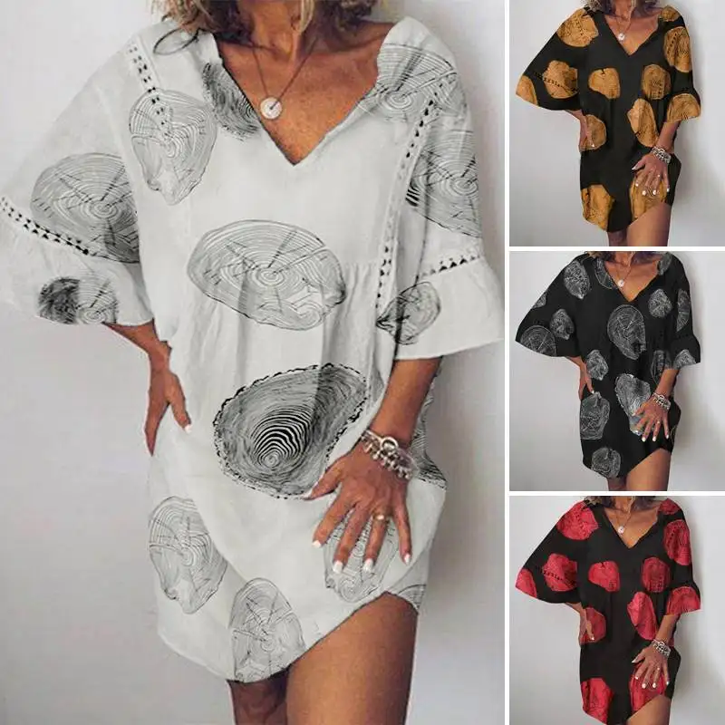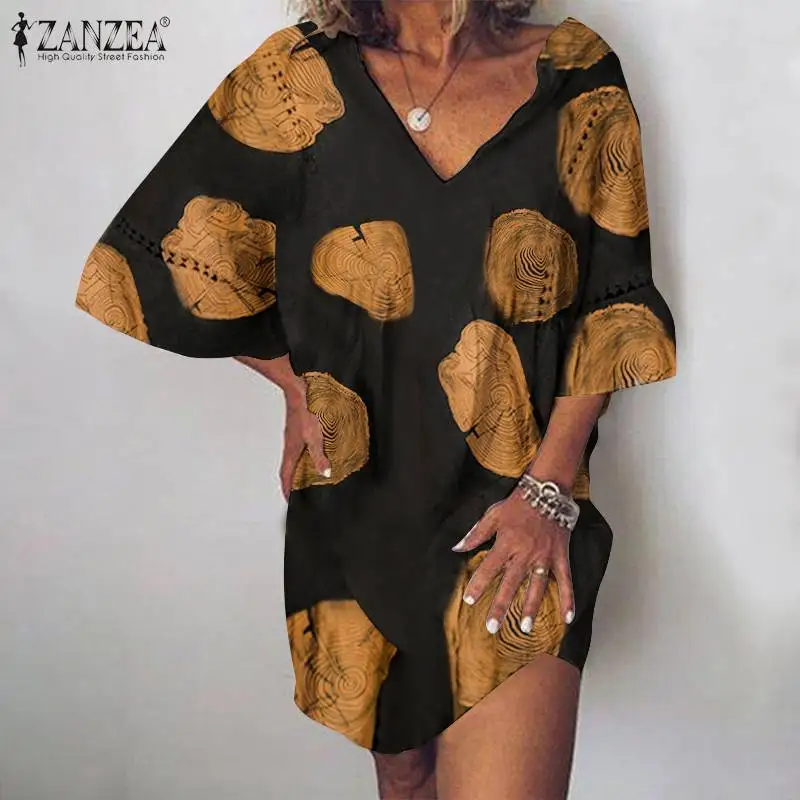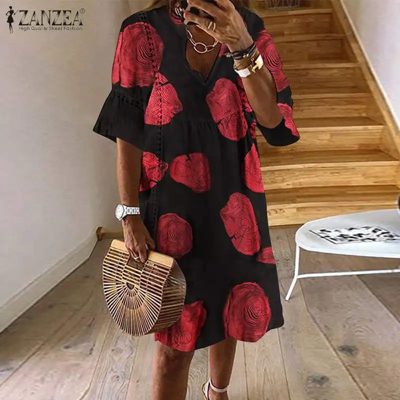 Летнее платье ZANZEA 2022 с расклешенными рукавами, женский сарафан с цветочным принтом, женское богемное праздничное платье с V-образным вырезом, женское короткое платье