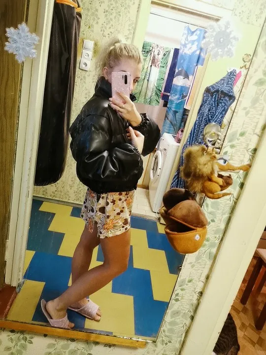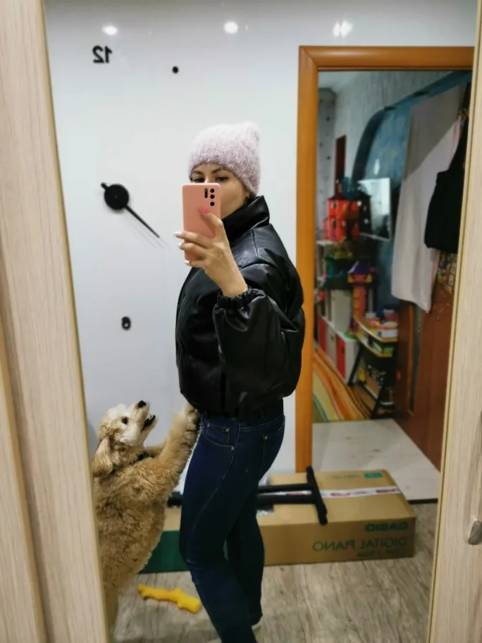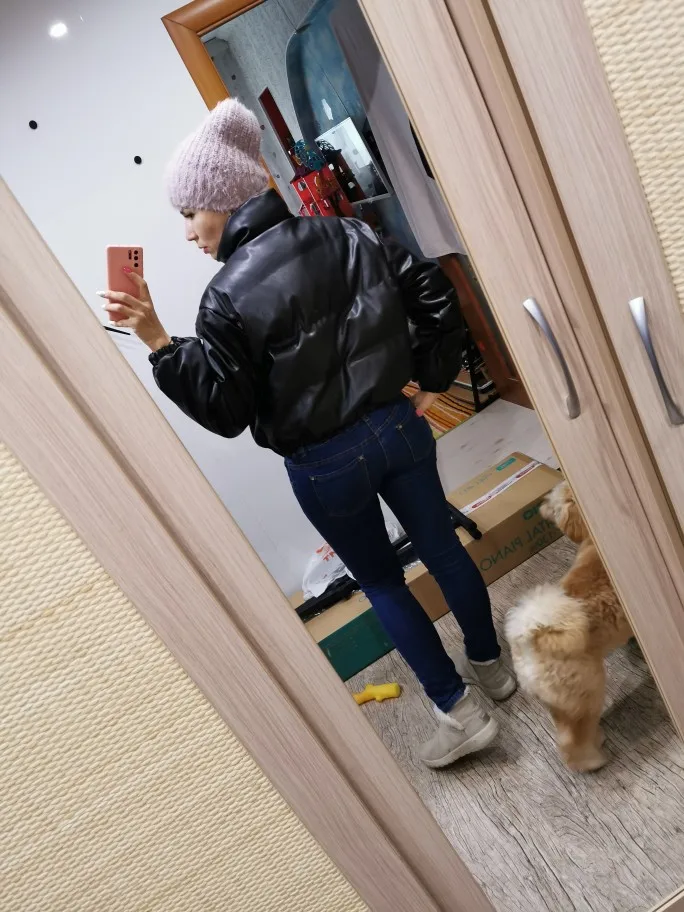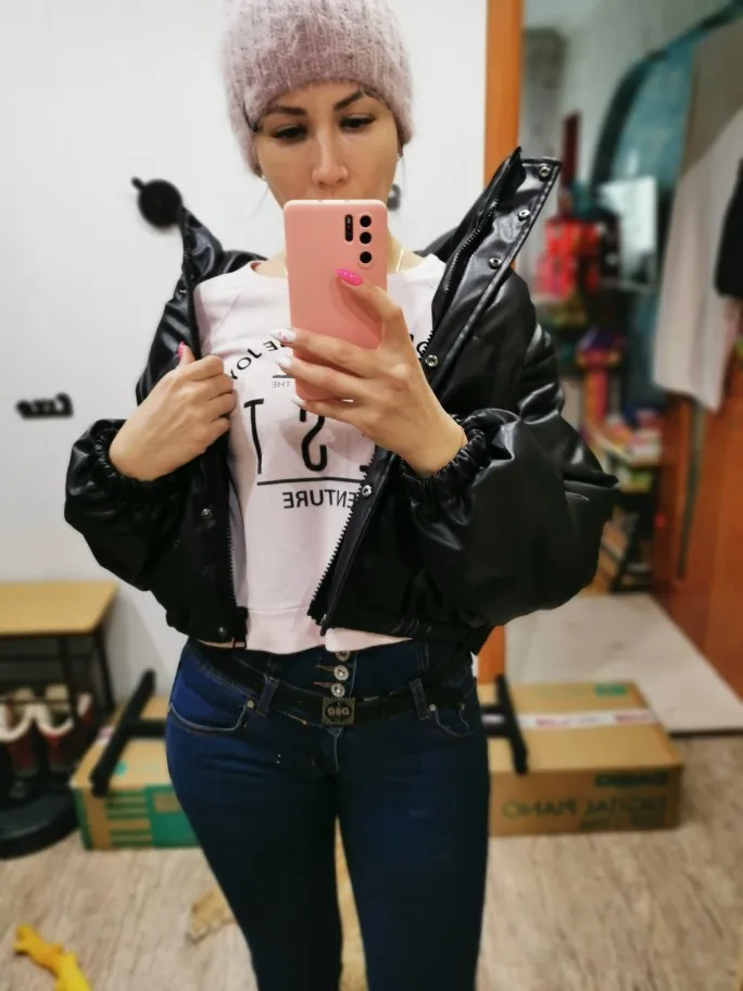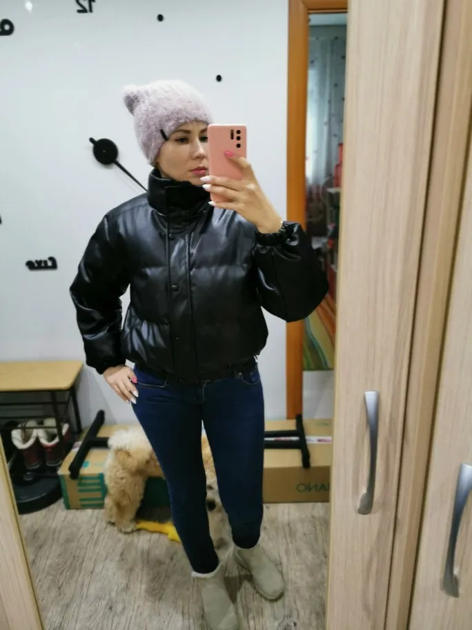 Итак девочки, рассказываю. Во-первых, это НЕ зимняя куртка, максимум до -5(10), потом боюсь что потрескается, ну и холодная сама по себе. Во-вторых она короткая, для меня очень. Я заказала размер S, на объём груди 97см, можно было и М, думаю было бы лучше чтобы надеть тёплую кофту вниз. До Казани шла 12 дней. Качество хорошее, неприятного запаха нет.