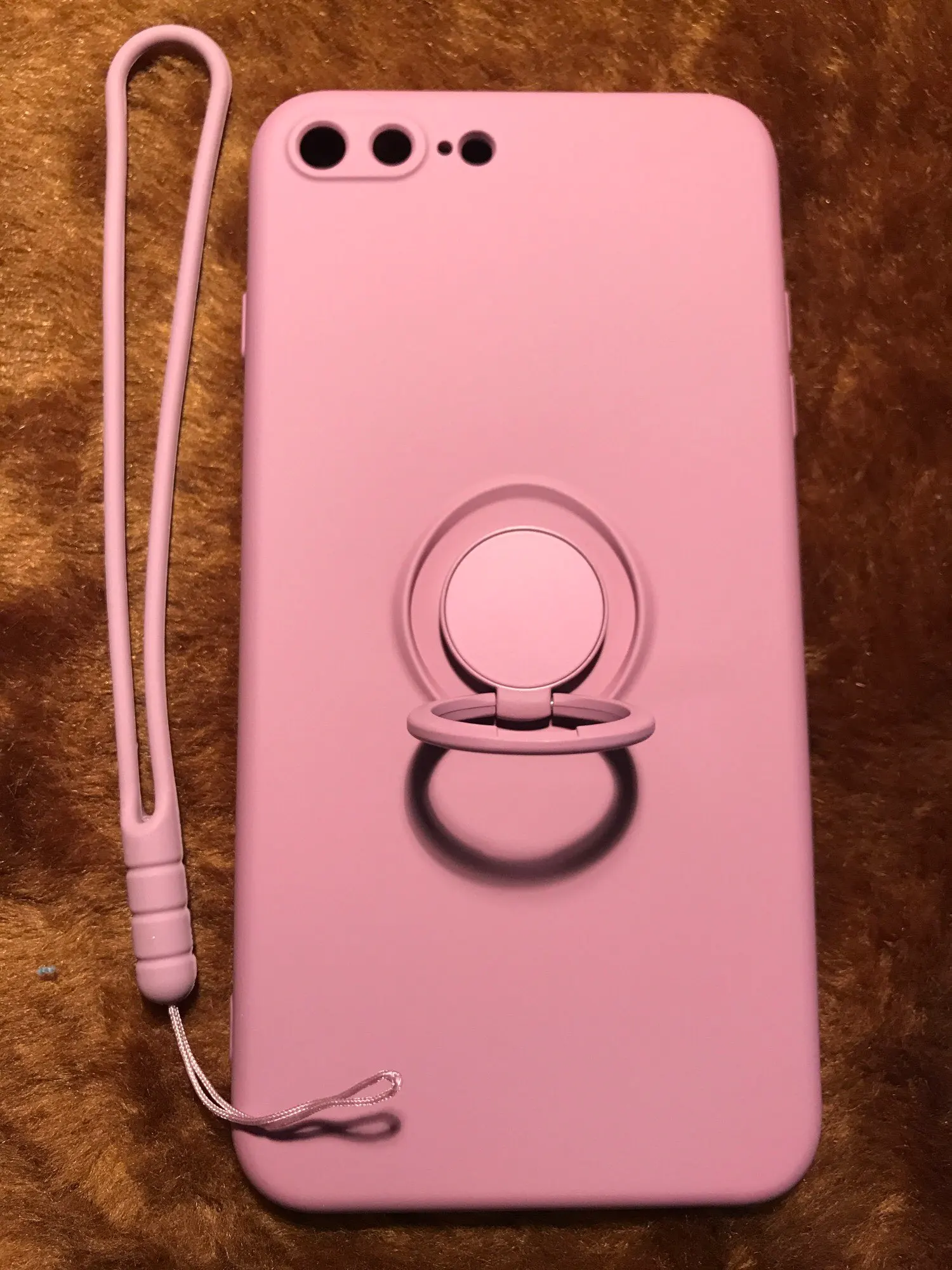 Чехол шикарный!!! Цвет светлее, чем на фото продавца (мои фото вообще не передают настоящий цвет почему-то), светло-лиловый, оооочень красивый! Качество 10+! Мягкий, одевается Хорошо, бока закрыты высоко, камеры с отверстиями в чехле ровно совпадают, кольцо держится прекрасно, ремешок мягусенький силиконовый. Доставили +- за месяц. Очень довольна, закажу ещё несколько цветов!