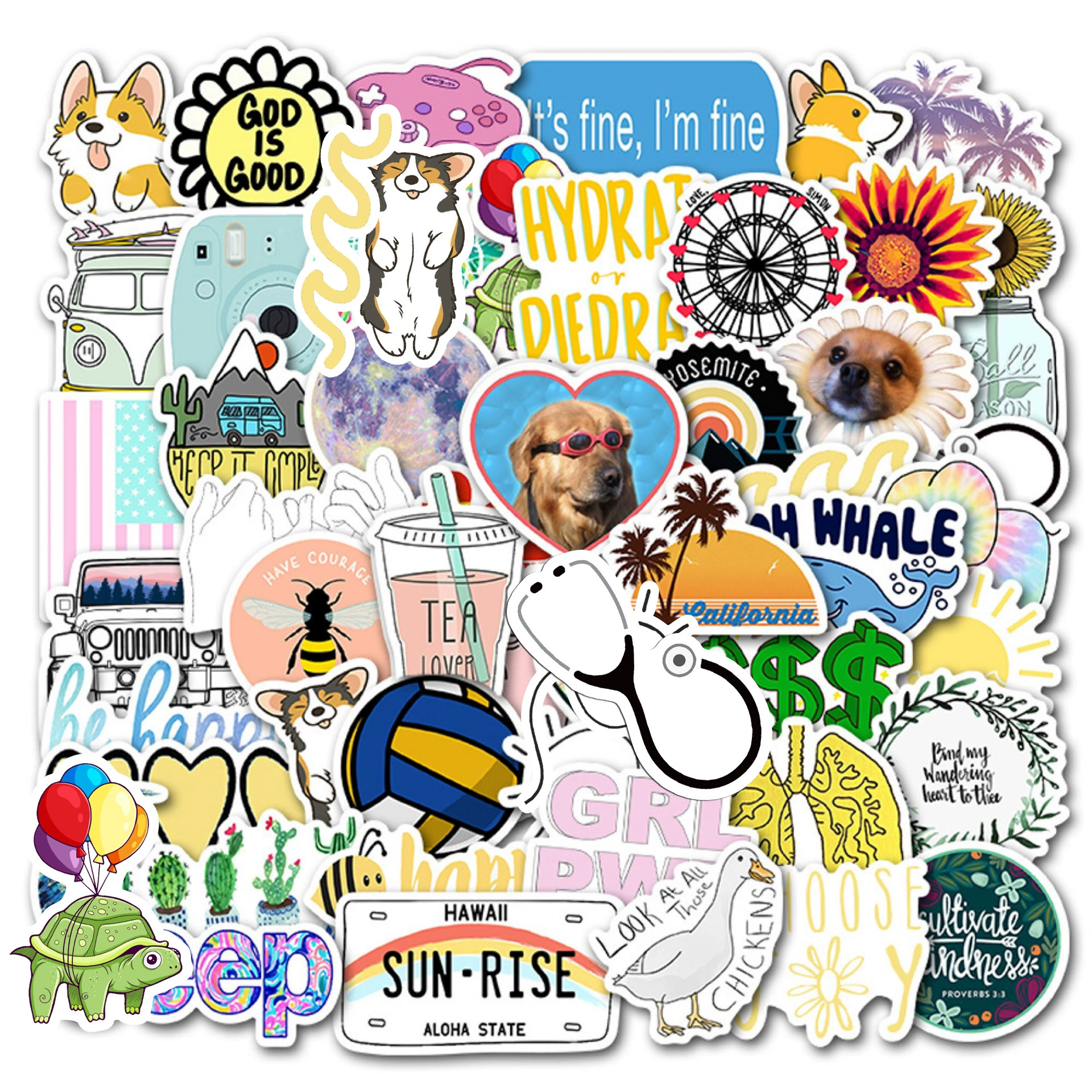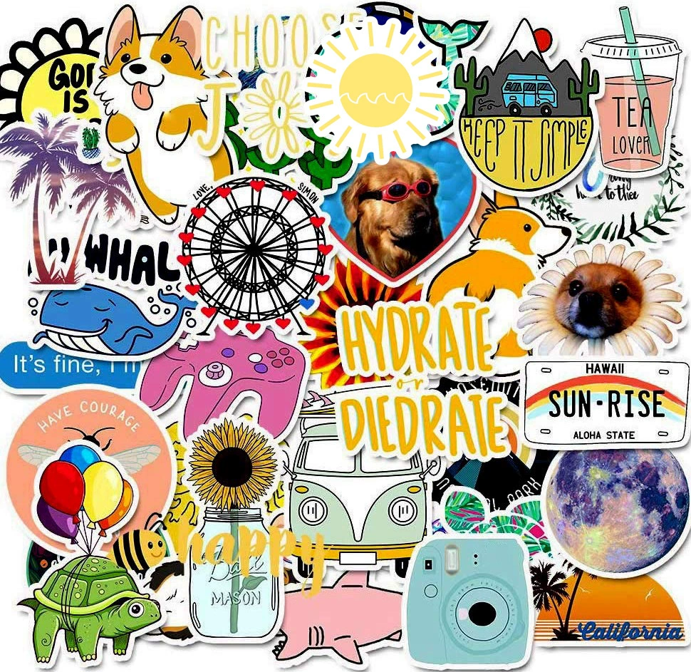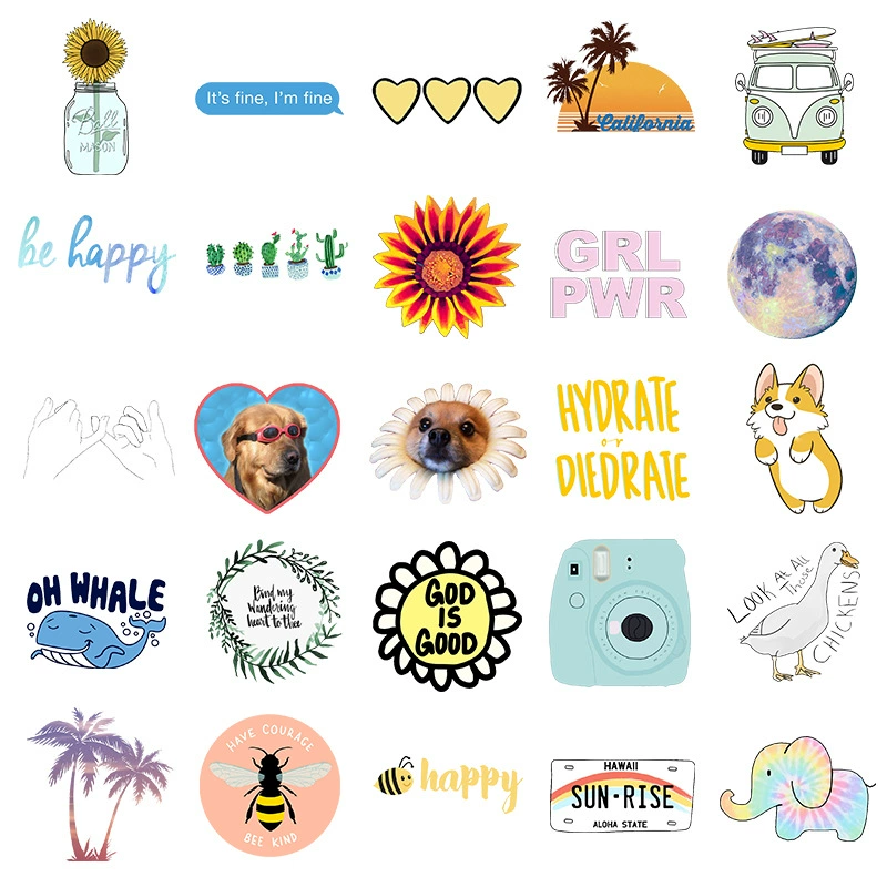 50 шт.компл. Мультяшные простые кавайные наклейки VSCO Girls для де...