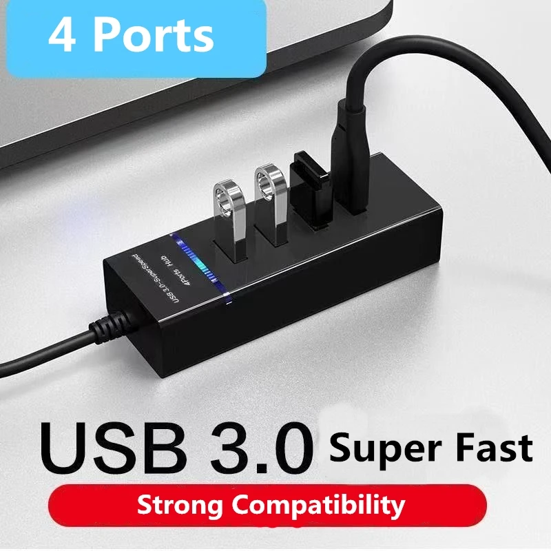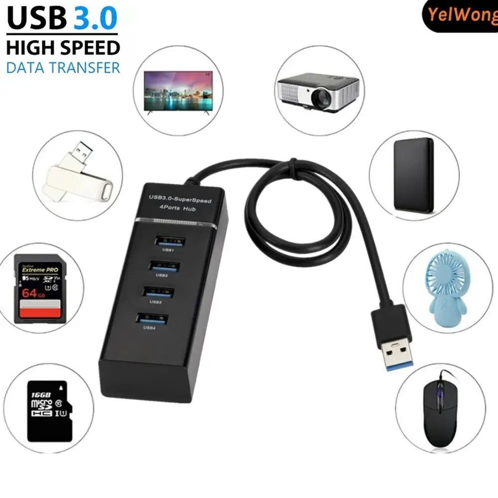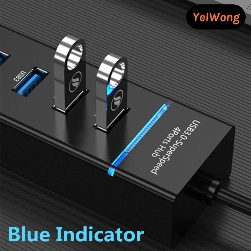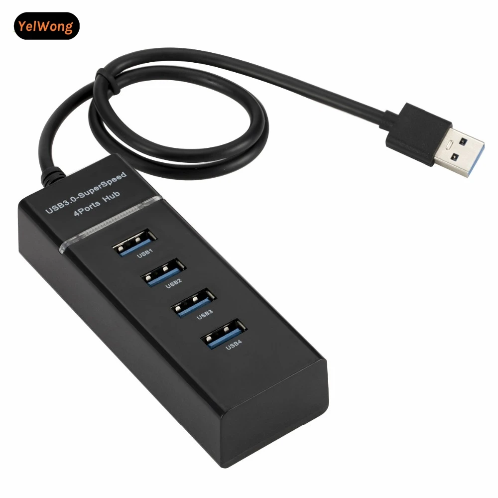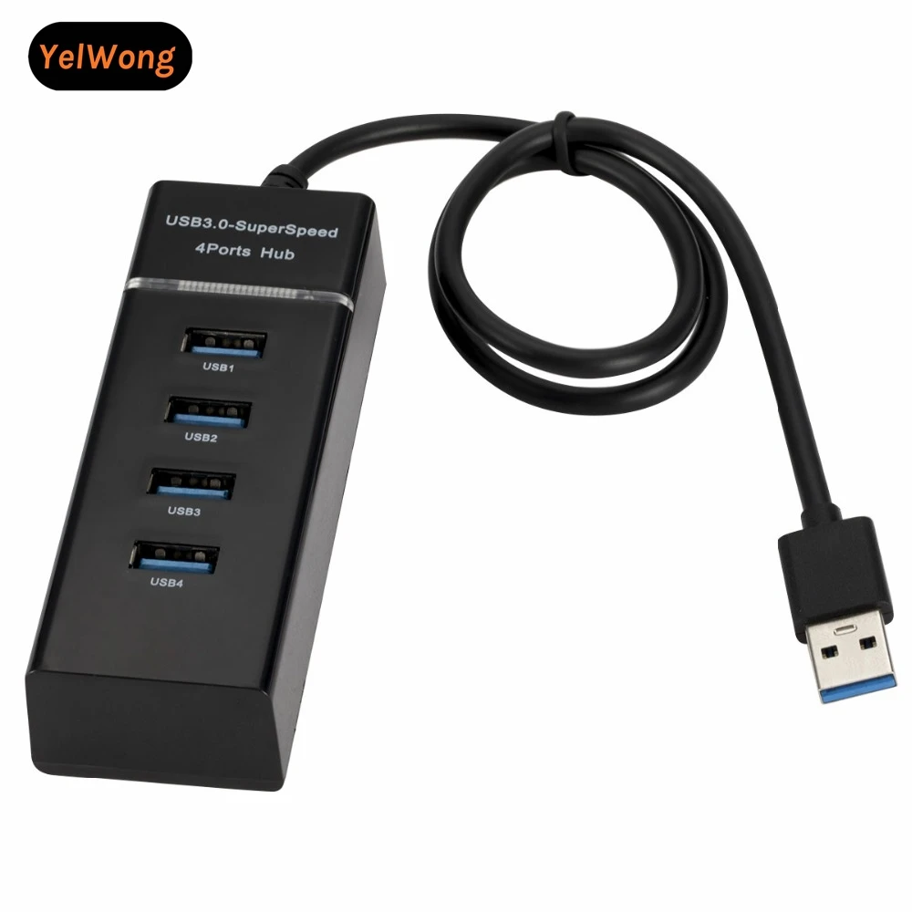 Высокоскоростной USB-концентратор 4 в 1, USB 3,0, USB-разветвитель, 4 порта, независимый светодиодный индикатор, адаптер для ПК, ноутбука, Mac