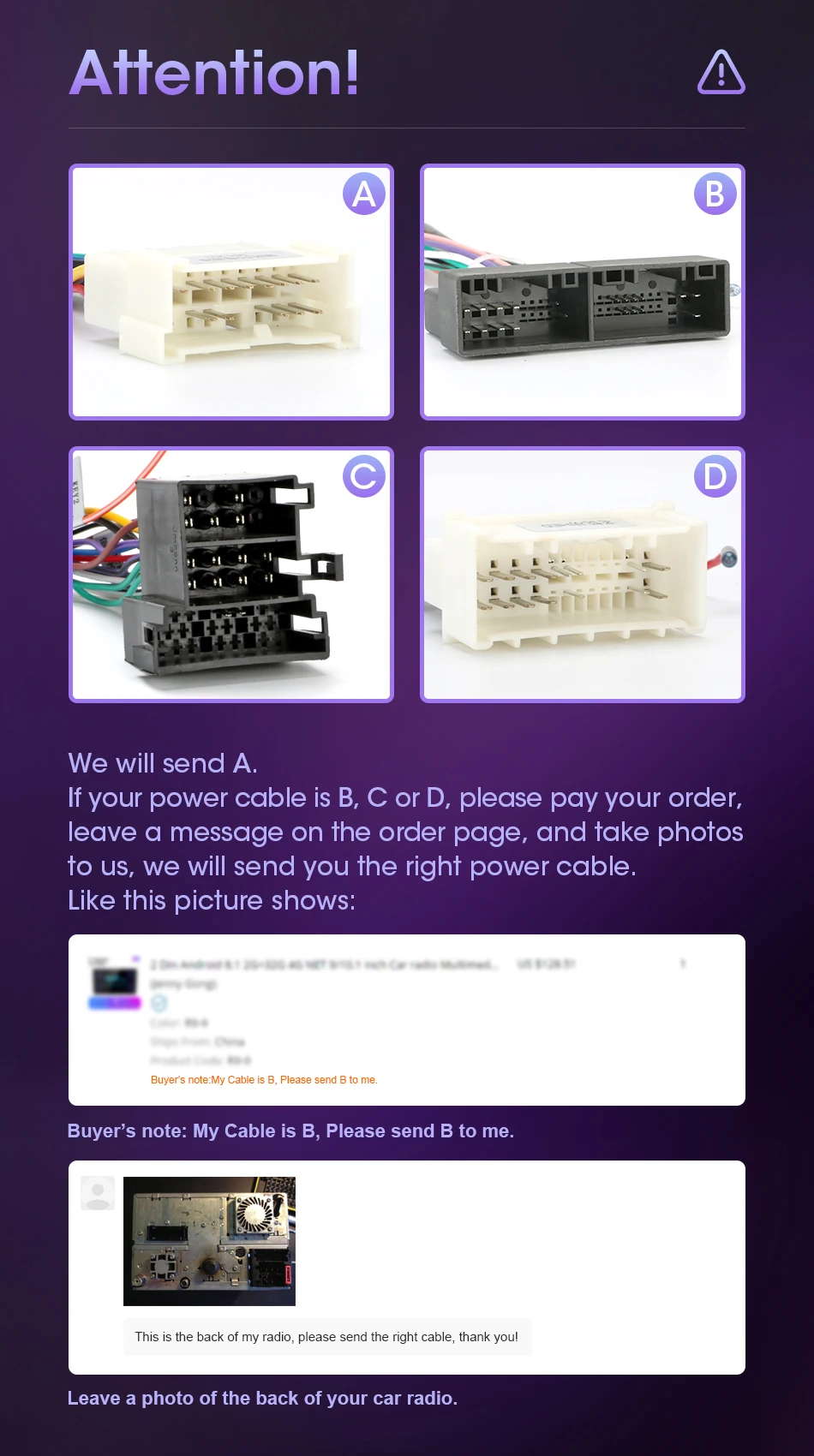 Для Hyundai Santa Fe 2006-2008, пожалуйста, обратите внимание на кабель A после покупки.