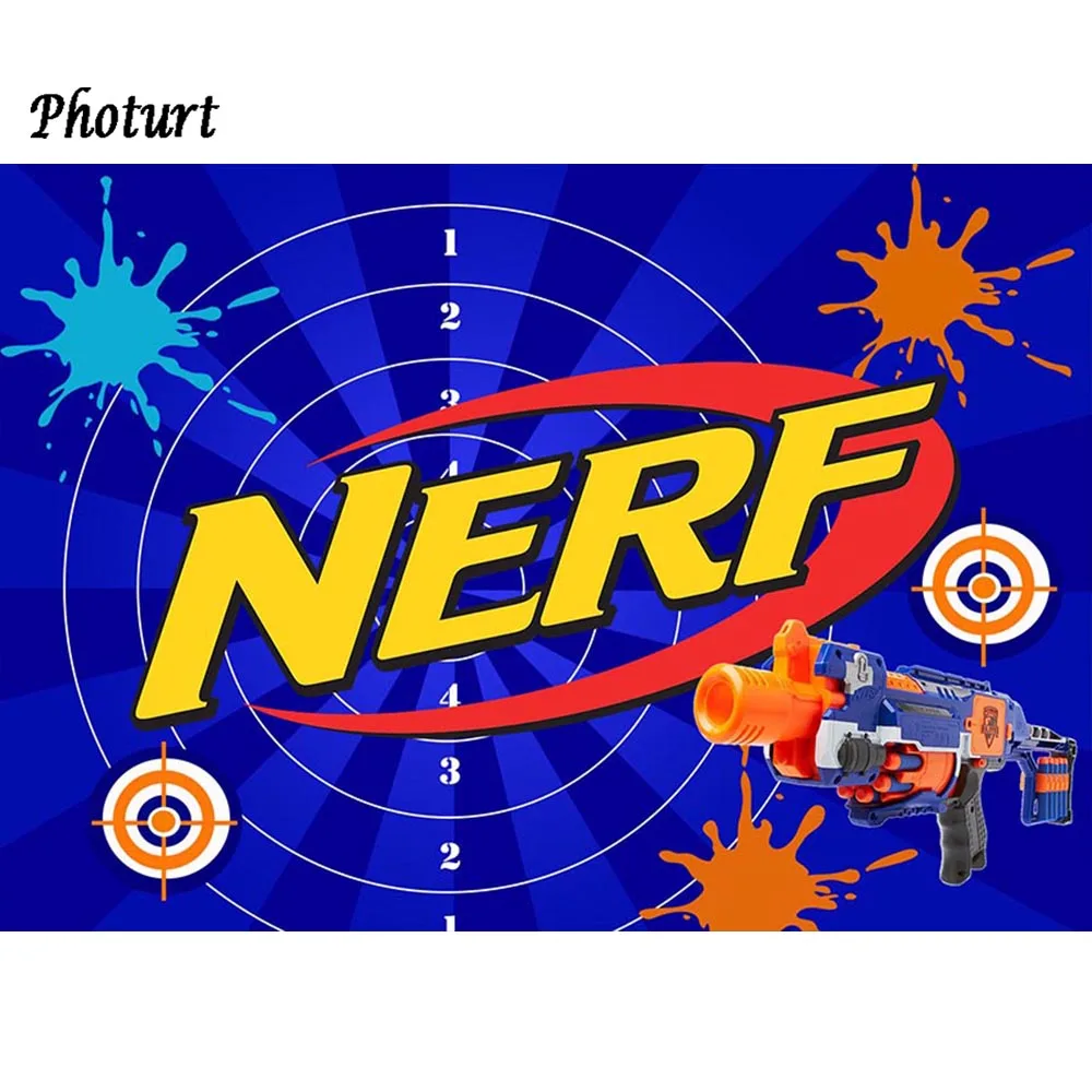Фотофон на заказ с пистолетом NERF фон для детского дня рождения Си...