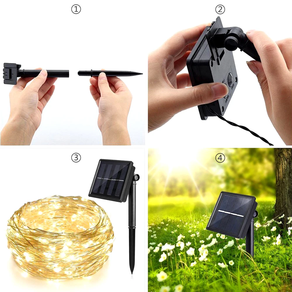Эффективное поглощение и Конвертация --- светодиодный Рождественский свет, разработанный с солнечной панелью и перезаряжаемой батареей, Солнечная гирлянда может работать около 8 часов ночью, если панель поглощает достаточно солнечного света в течение дня.