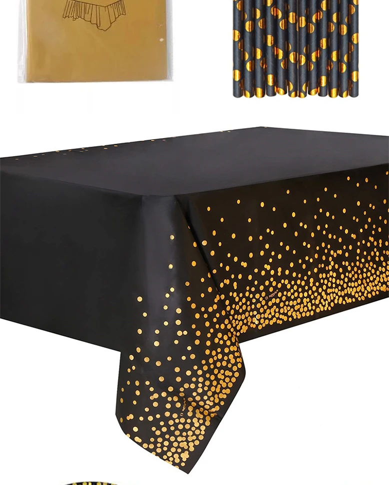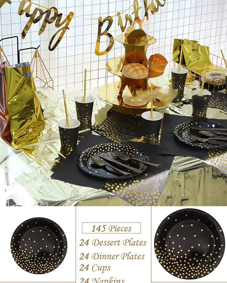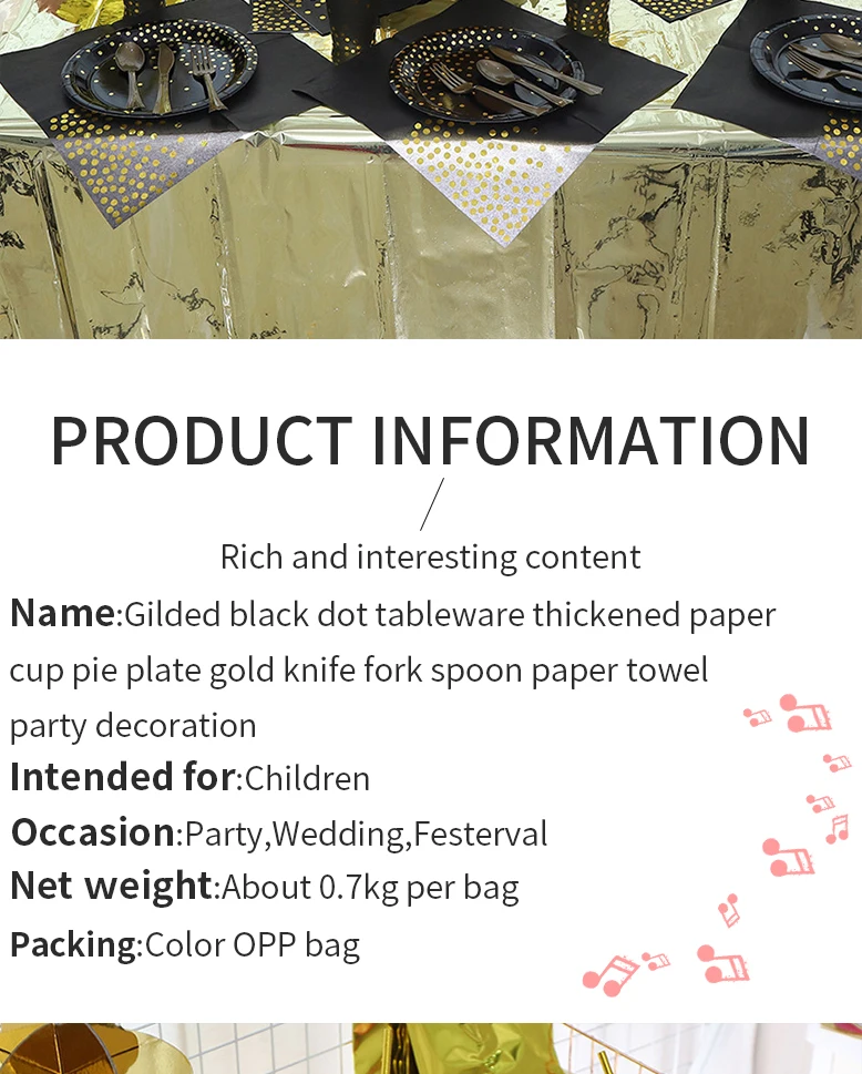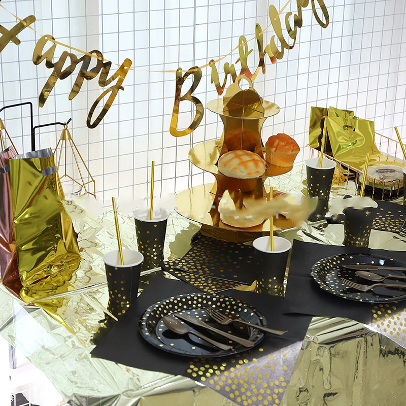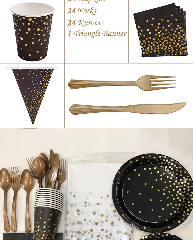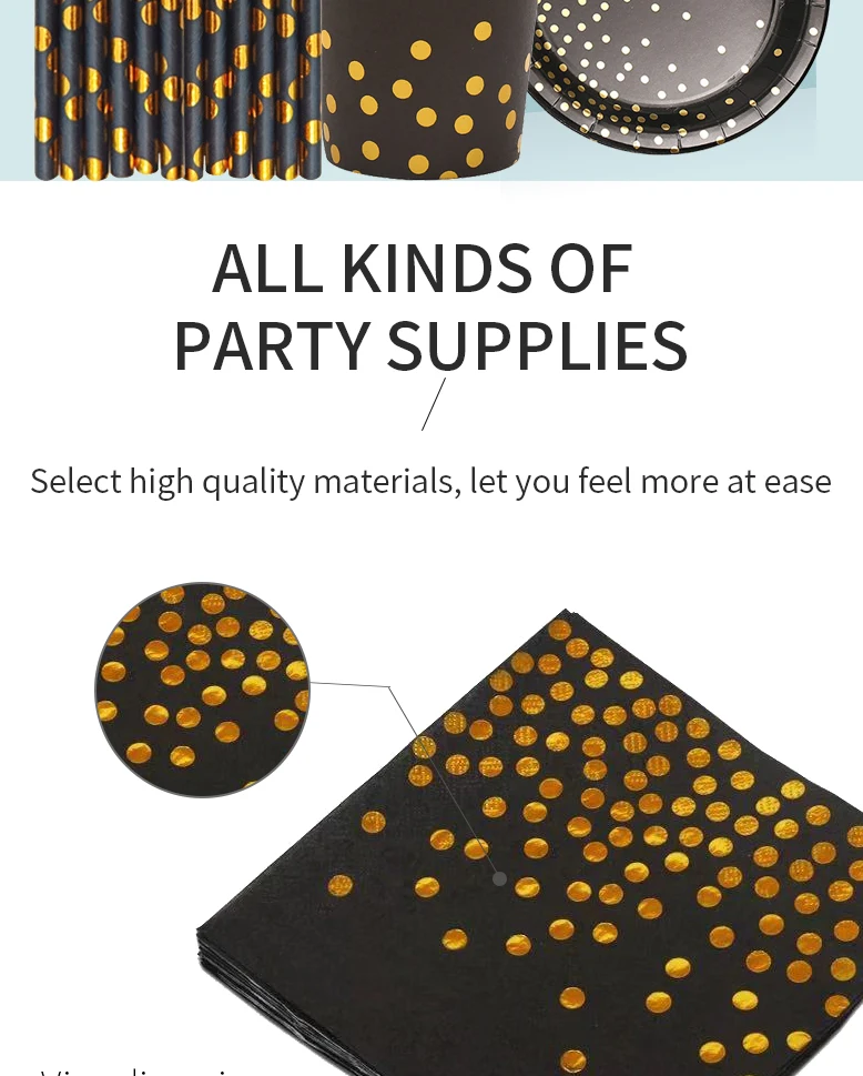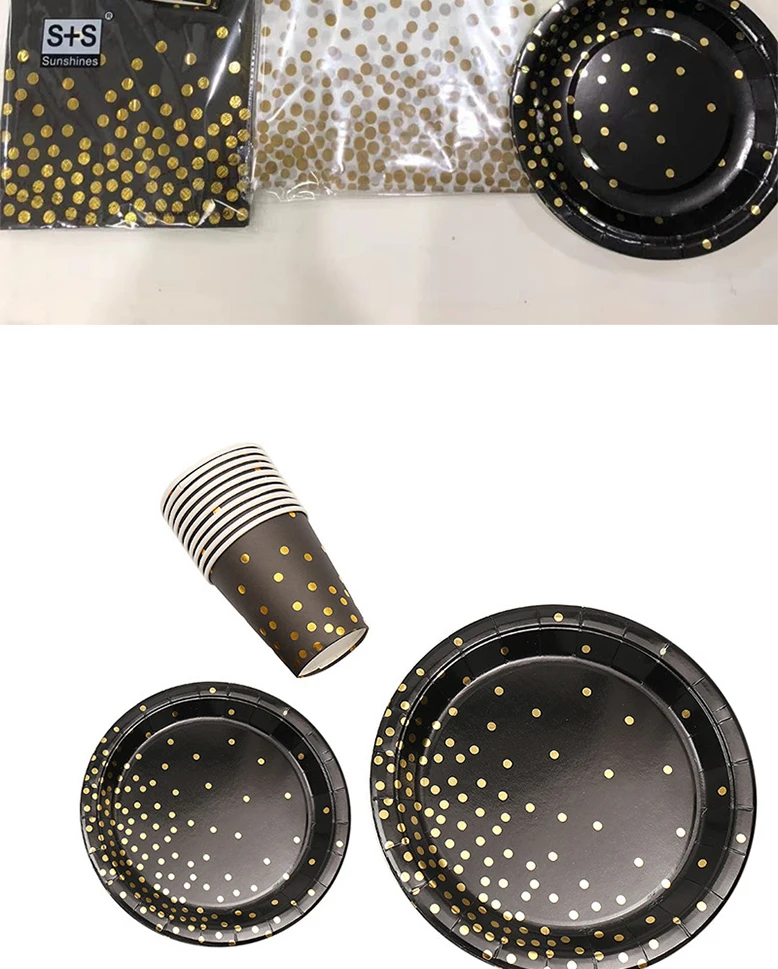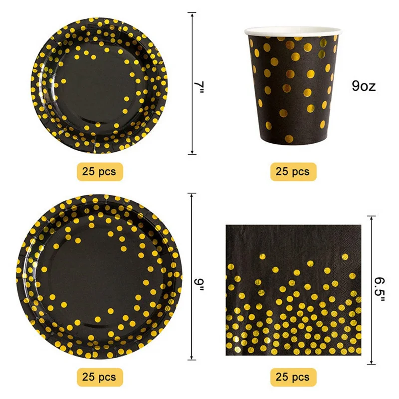 Позолоченные на точках черная одноразовая посуда уплотненный бумажный стаканчик, тарелка держатель для бумажных полотенец черный тема вечерние свадебные украшения