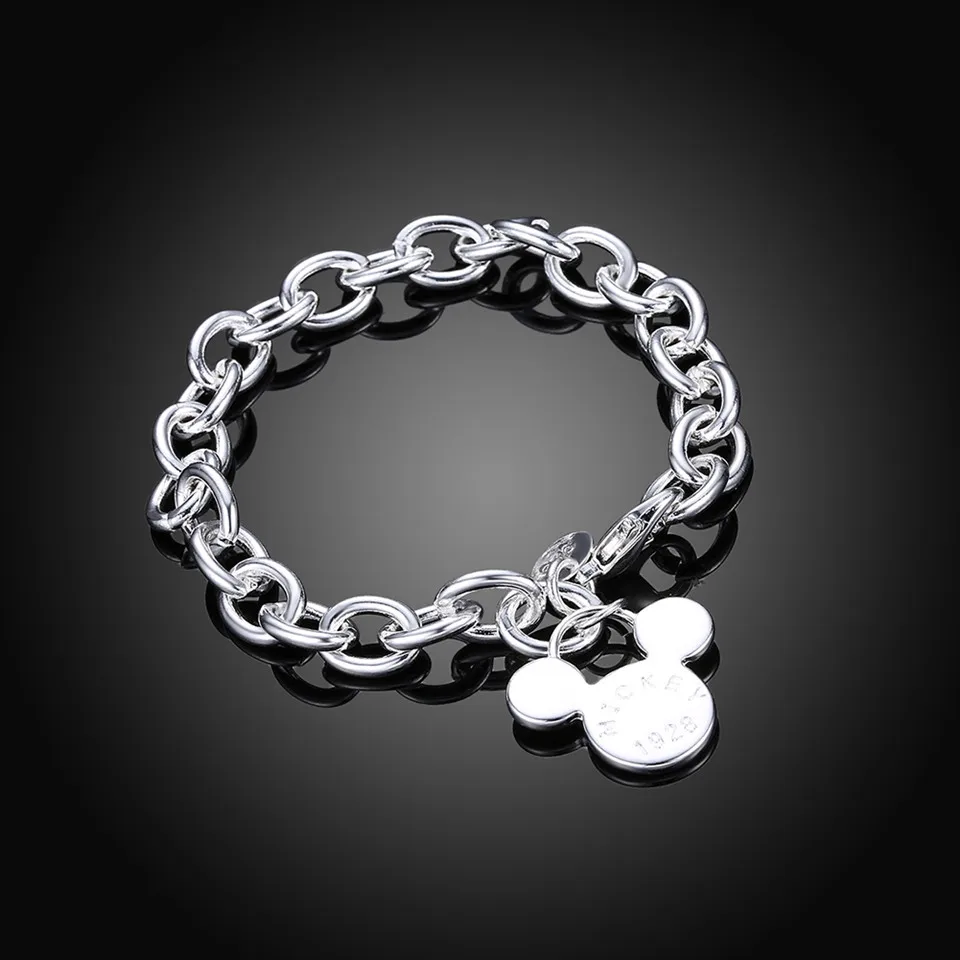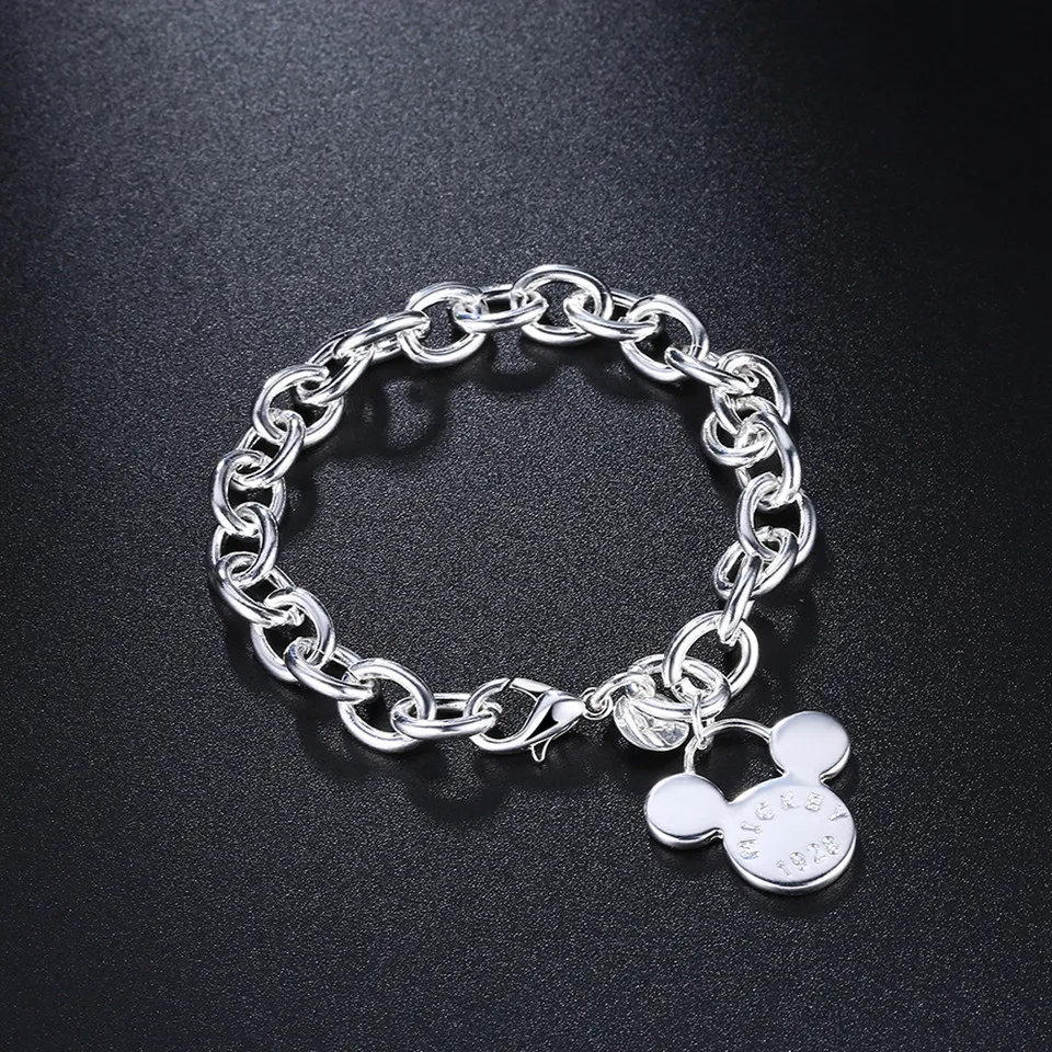 Мода 925 Серебро Милый Микки браслет с подвесками ювелирные изделия браслеты для женщин подарок для девочек