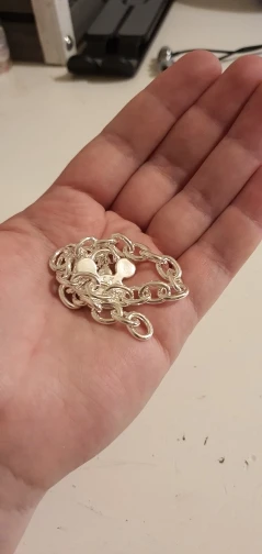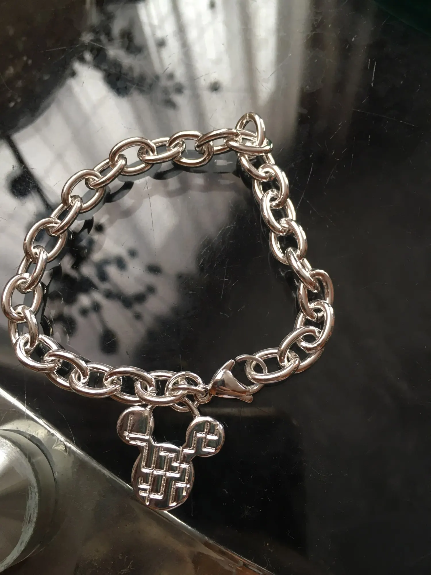 Статья, как описано и видно на фото. Принесите серебряную печать. Это ничего не весит. Это скорее толстая цепь. Будем надеяться, что он не станет розовым, как это случилось со мной с другим пандором, купленным в другом магазине. Я рекомендую покупку этого браслета.