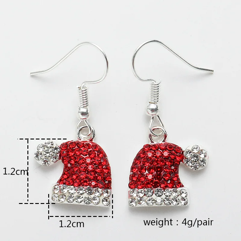 Рождественская шапка с кристаллами, висячие серьги для женщин и девочек, рождественская елка, серьги в форме северного оленя, ювелирные изделия, рождественские подарки, серьги