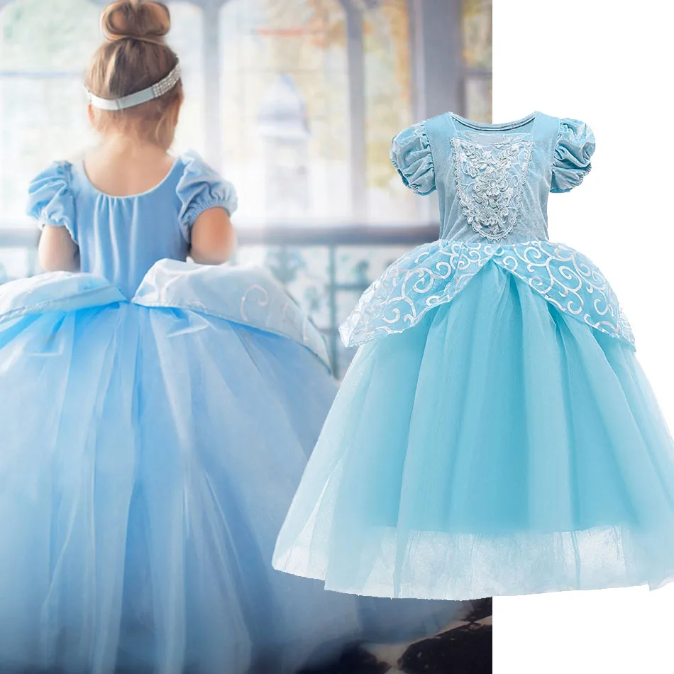 Нарядный костюм Золушки для девочек, многослойный наряд на Хэллоуин с пышными рукавами