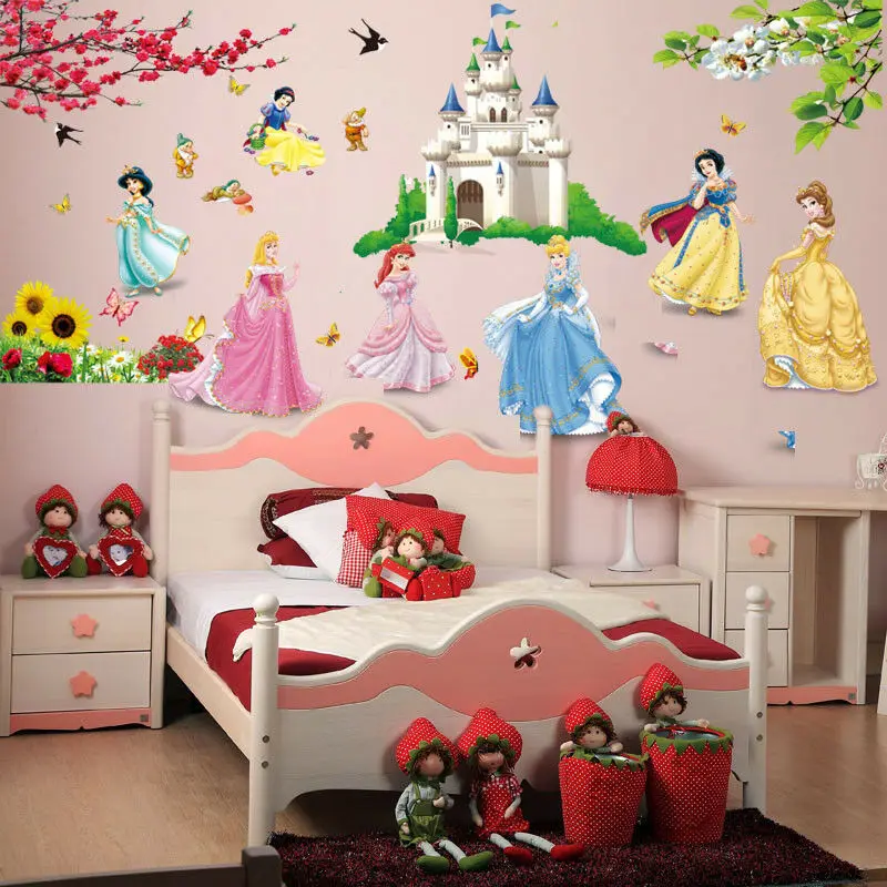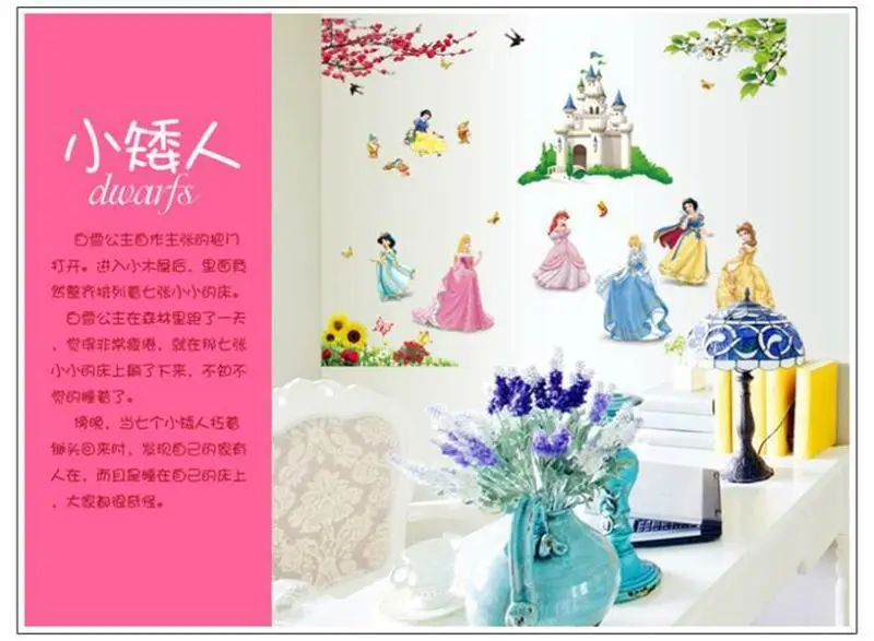 Прекрасный Diy семь принцесс птицы цветок замок настенные наклейки ...