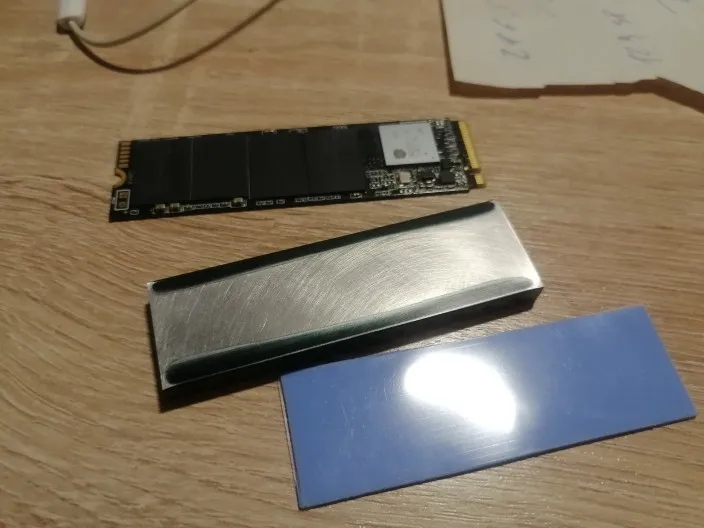 наклеил прям на наклейку ссд и забыл, вроде норм термопрокладка толстая