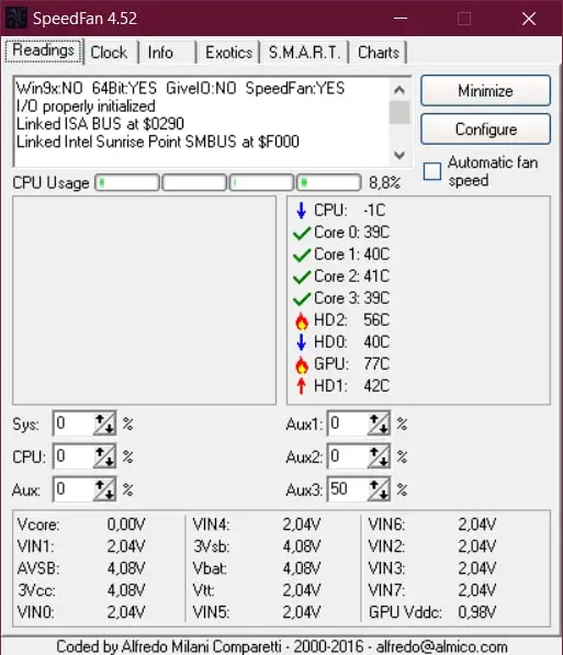 Получил минус 10 градусов, температура теперь не поднимается выше 40 градусов с учётом того что на него дует кулер