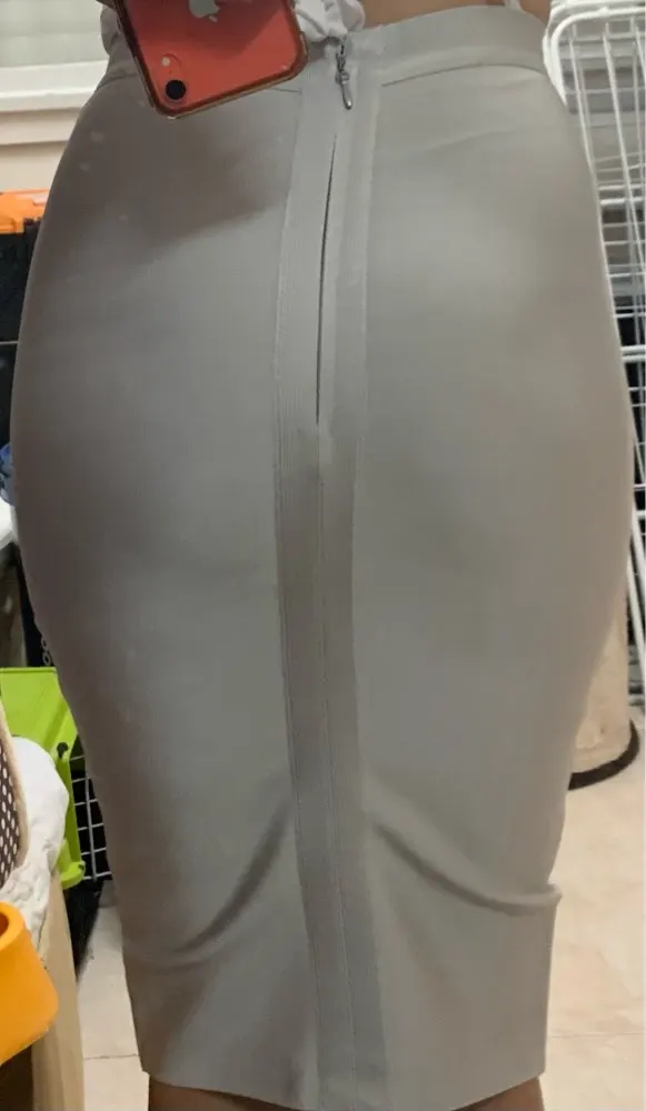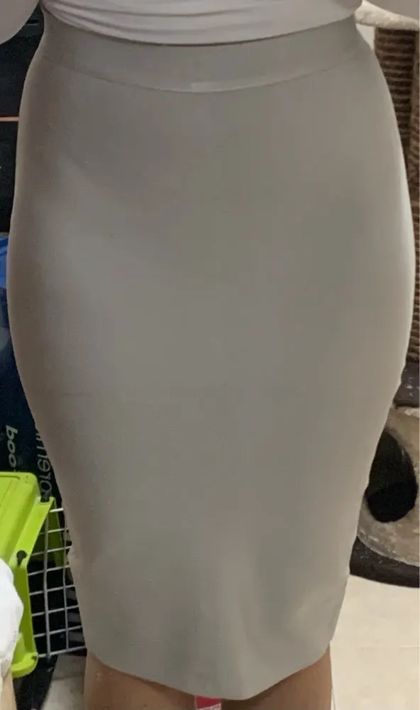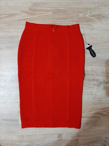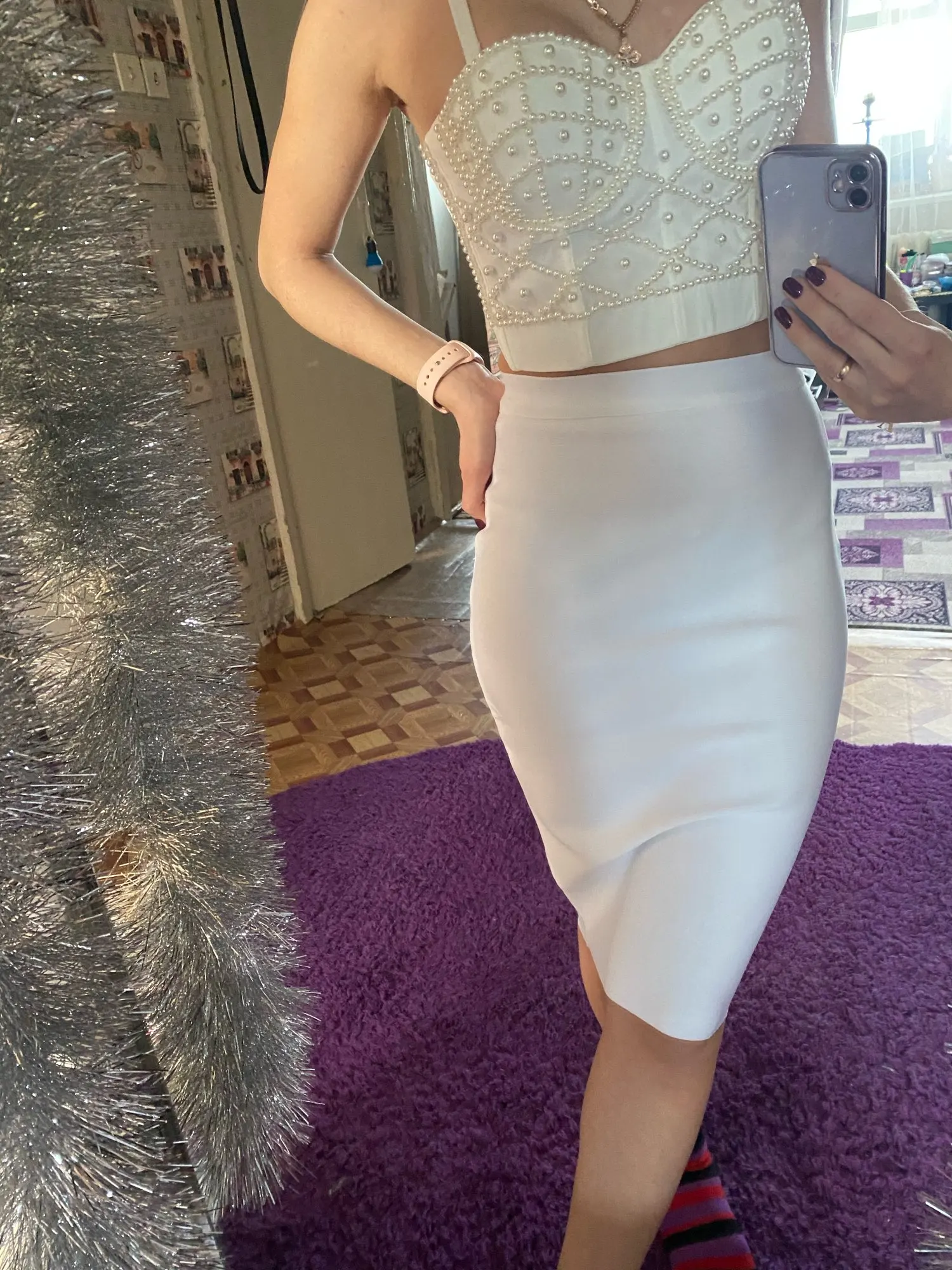 Юбка приехала в рекордные сроки, хорошего белого цвета. Действительно бандажная, очень хорошо формирует фигуру. Очень приятный плотный материал, но в белом цвете просвечивает бельё. Швы ровные, качество на высоте. Однозначно рекомендую к покупке!