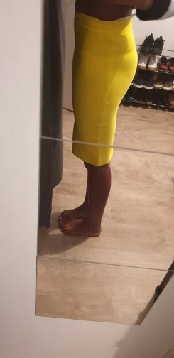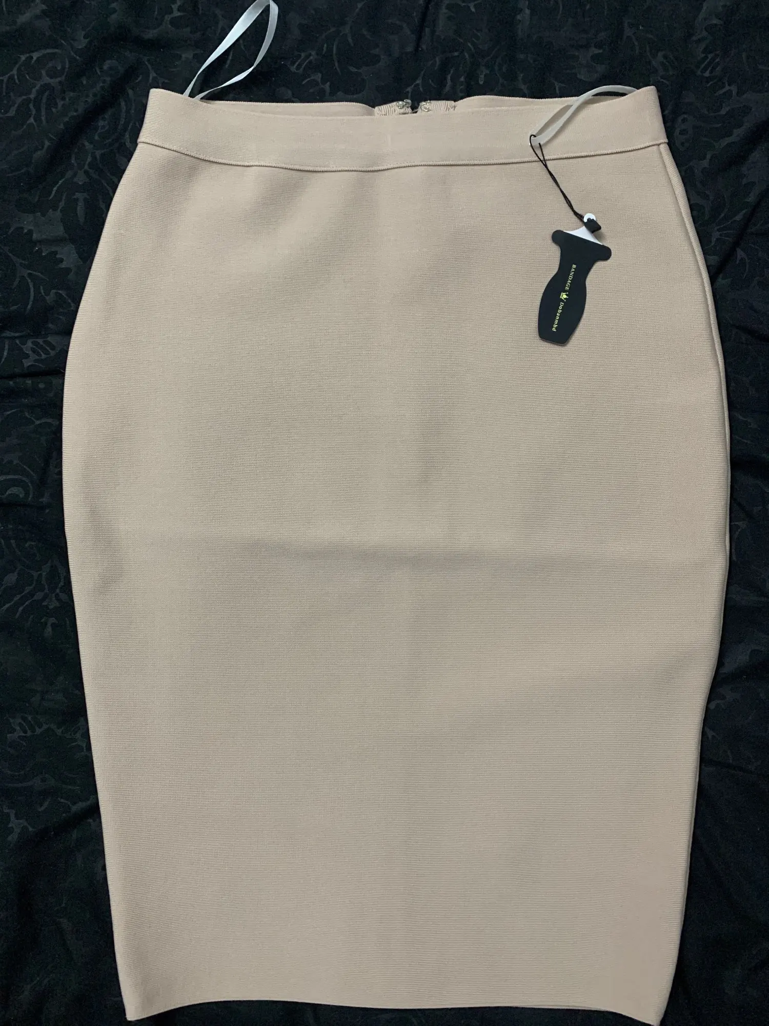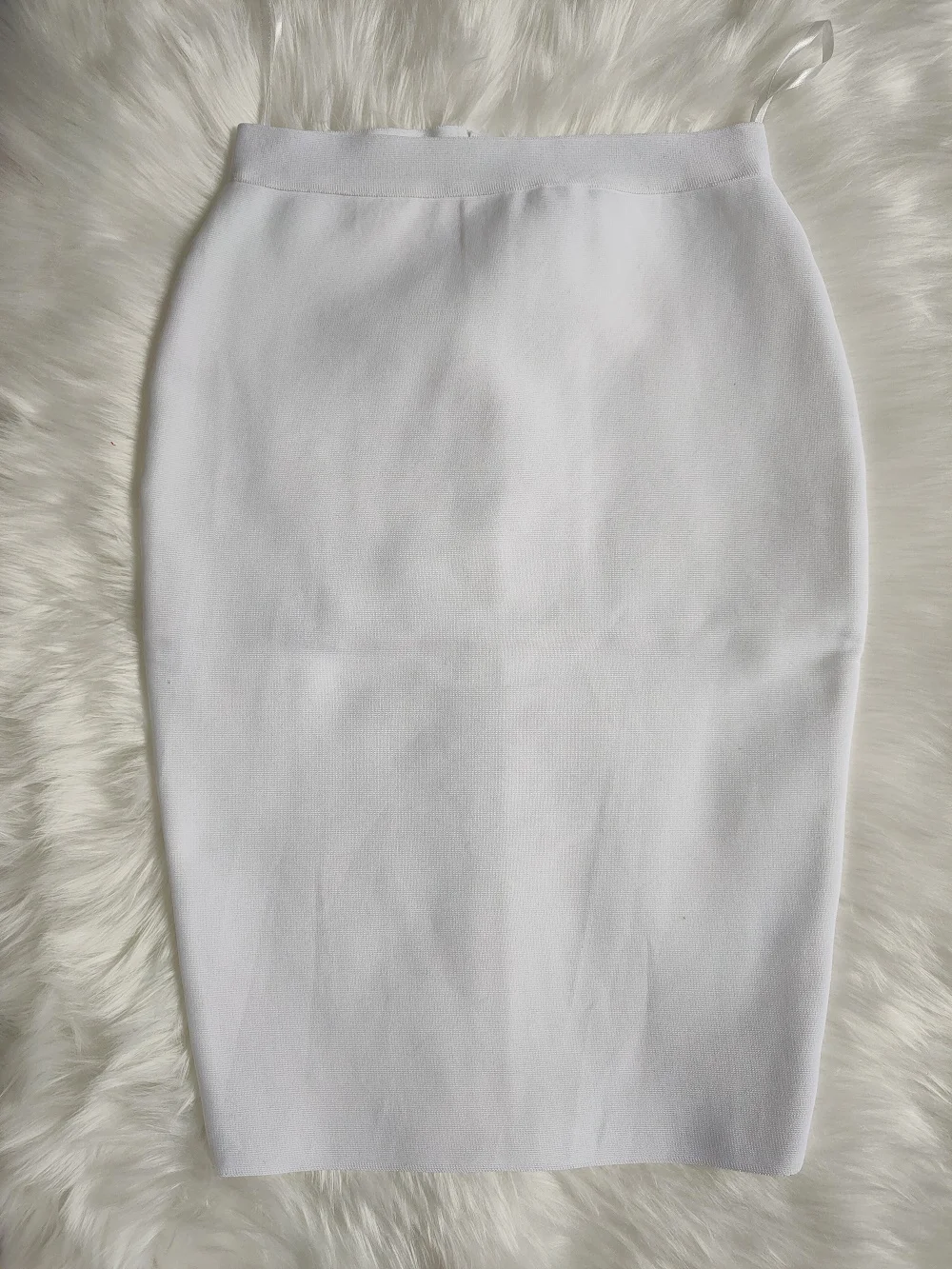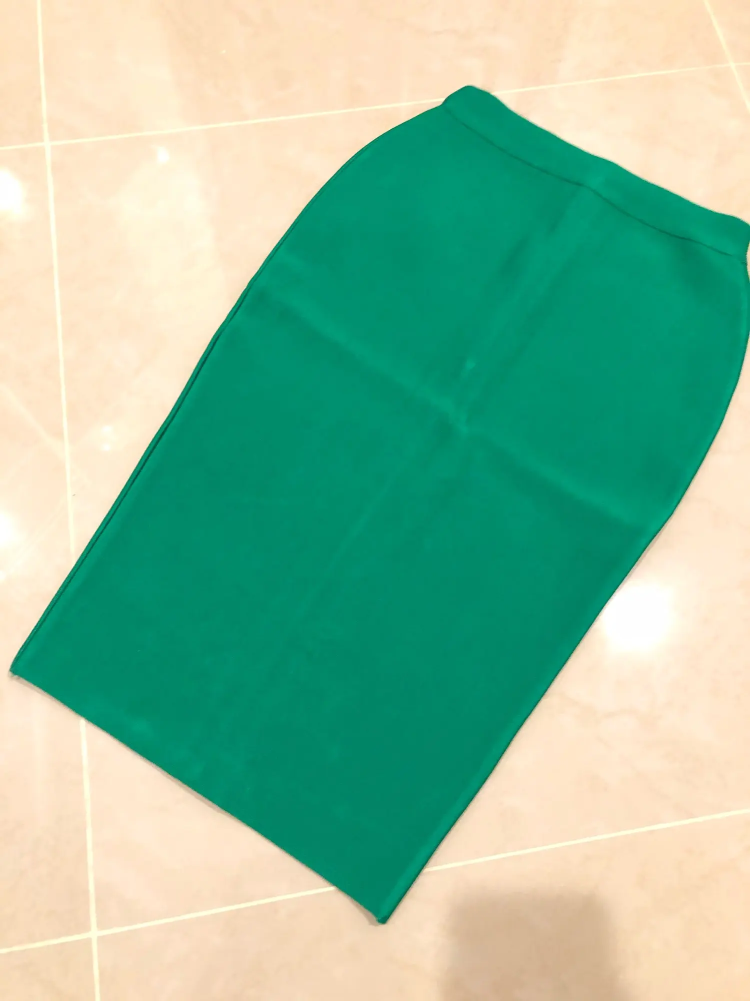 Юбка приехала в рекордные сроки, хорошего белого цвета. Действительно бандажная, очень хорошо формирует фигуру. Очень приятный плотный материал, но в белом цвете просвечивает бельё. Швы ровные, качество на высоте. Однозначно рекомендую к покупке!