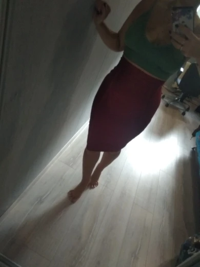 Юбка L на параметры 90-70-93 мне очень большая, к сожалению. А вот в продольную полоску брала красную L села хорошо, но там был брак на ткани, этот вопрос с продавцом решили. Но увы, голубая юбка огромного размера и мне не подошла, носить не смогу обе юбки(