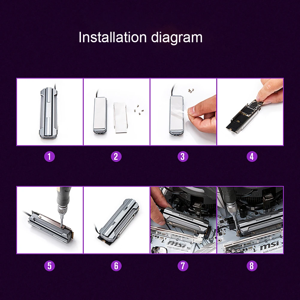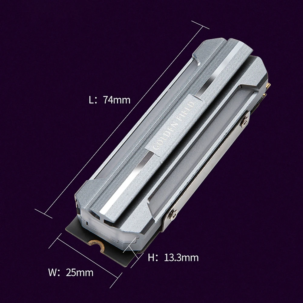 Алюминиевый радиатор ARGB радиатор с жестким диском теплоотвод для M.2 2280 SSD Характеристики: Изготовлен из алюминиевого сплава, имеет отличный эффект отвода тепла. Охлаждающий Жилет совместим с M.2 интерфейсом 2280 спецификации SSD, в то время как он не мешает оборудованию слотов PCI-E. 16 миллионов цветов достигают фиксированного одноцветного, радужного и многоцветного цикла. Наименование товара: радиатор SSD Материал: алюминий Подходит: для M.2 2280 SSD Светильник: ARGB Особенности: рассеивание тепла, изменение цвета, защита от ржавчины Размер: 74 мм x 25 мм x 13,3 мм/2,91 "x 0,98" x 0,52 "(прибл.) Примечания: Из-за разницы в освещении и настройках экрана светильник может значительно отличаться от цвета на фотографии. Возможны незначительные отклонения в размерах из-за различных измерений вручную. SSD 2280, поддерживающий односторонние/двусторонние частицы, не поддерживает интерфейс M.2 на задней стороне материнской платы ITX. Посылка включает в себя: 1 x радиатор SSD