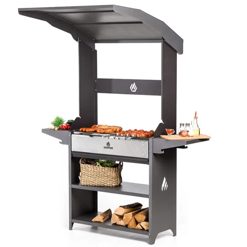 Выдерживает дровяную растопку Защита от непогоды Выдвижной зольник для регулировки интенсивности жара Декоративная панель из нержавеющей стали