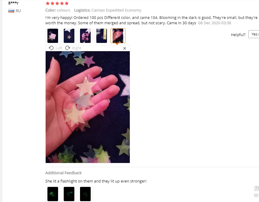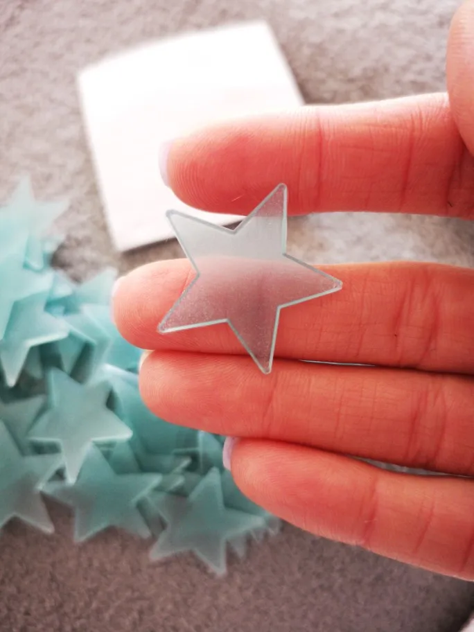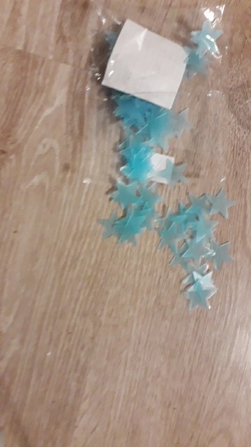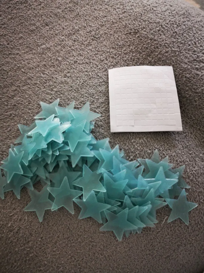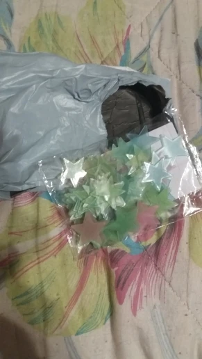 Товар шёл долго. Звёздочки не светятся. Скотч, на который они клеятся, беспонтовый. Они все отвалились. Пришлось переклеивать на свой скотч.