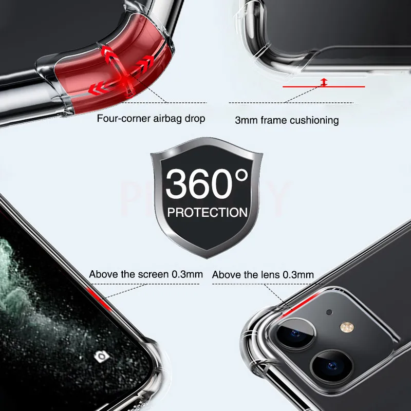 Противоударный силиконовый чехол для iPhone 11, 12 Pro Max, 7, 8, 6s Plus, SE 2020, прозрачный чехол для iPhone X, Xr, Xs Max
