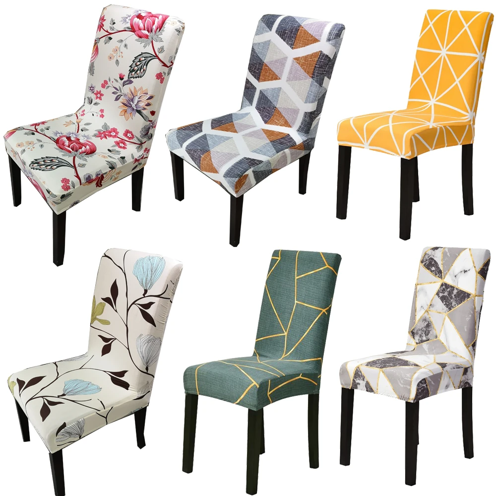 Гибкий эластичный Чехол для стула с цветочным принтом, универсальный клетчатый чехол из спандекса для кресла, столовой, кухни, отеля, свадьбы, банкета