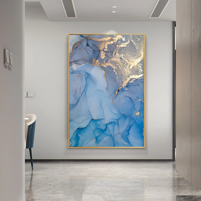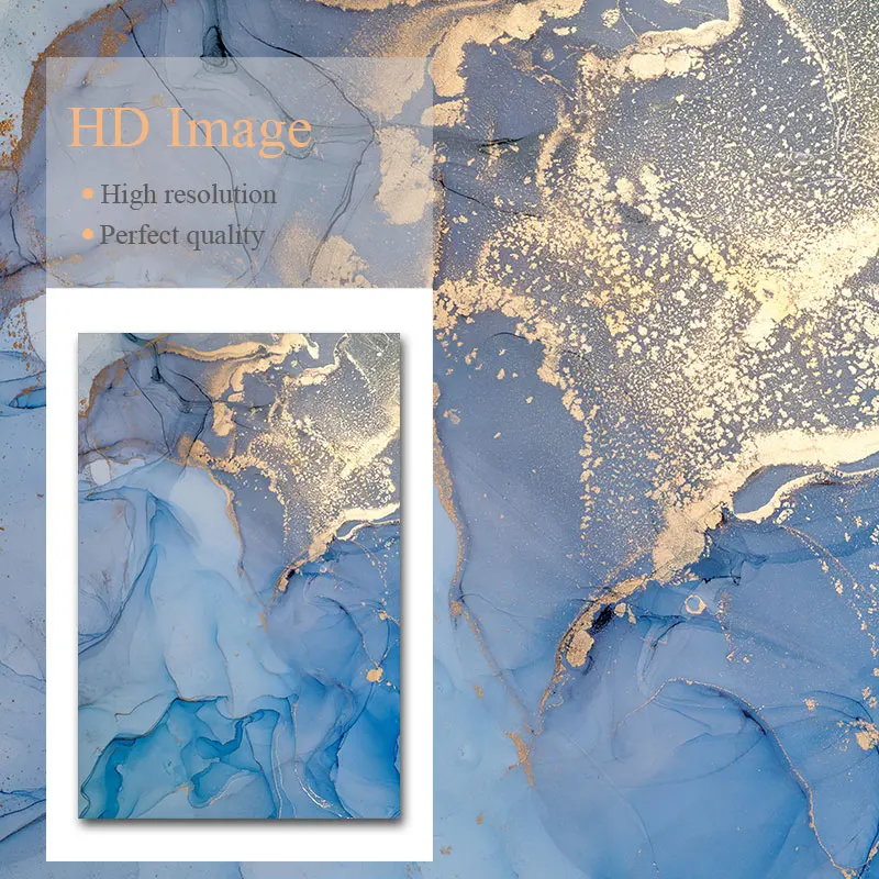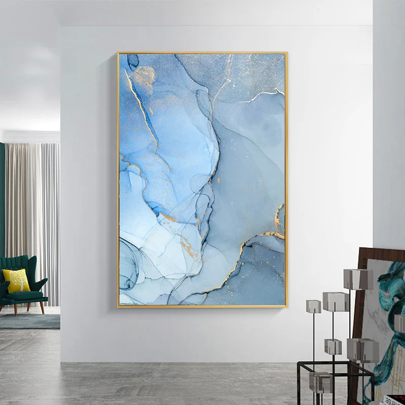Абстрактная Картина на холсте с изображением голубого золота, плака...