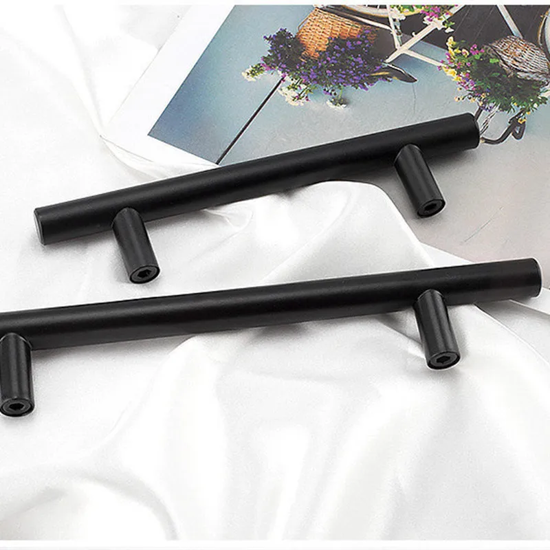 Современная матовая черная дверца кухонного шкафа из нержавеющей стали, Т-образная ручка, ручка 2 12 дюймов, кухонные ручки для ящиков