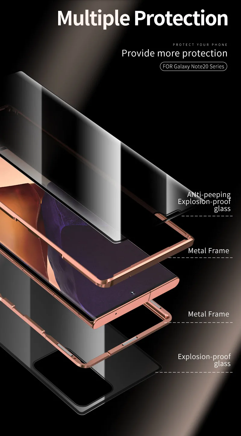Двухсторонние стеклянные чехлы с защитой от взглядов для Samsung Galaxy Note 20, ультратонкий металлический магнитный чехол для Samsung Note 20