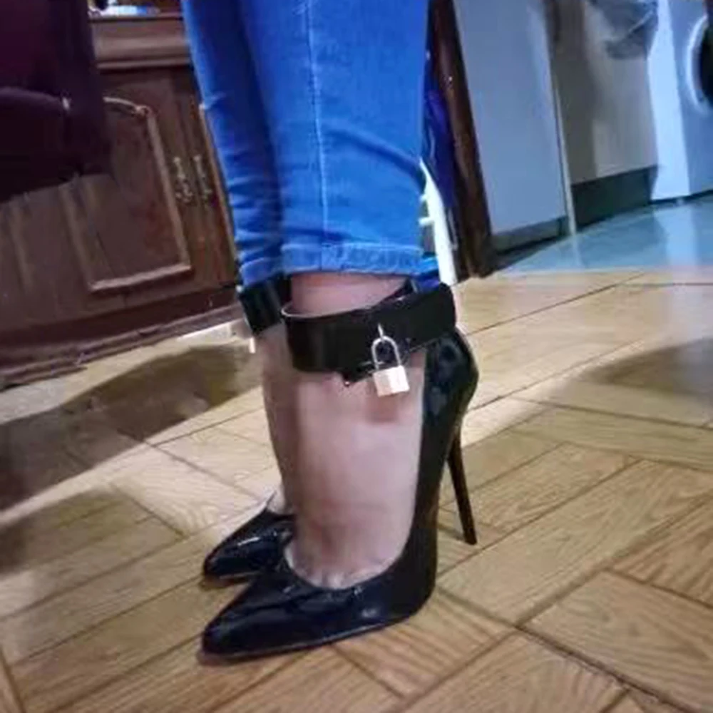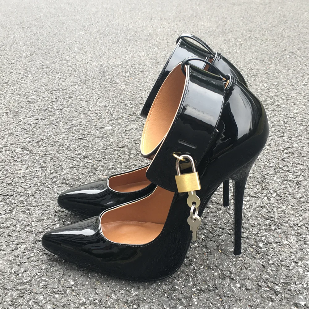 Туфли унисекс на высоком каблуке 12 см, с застежкой на щиколотке