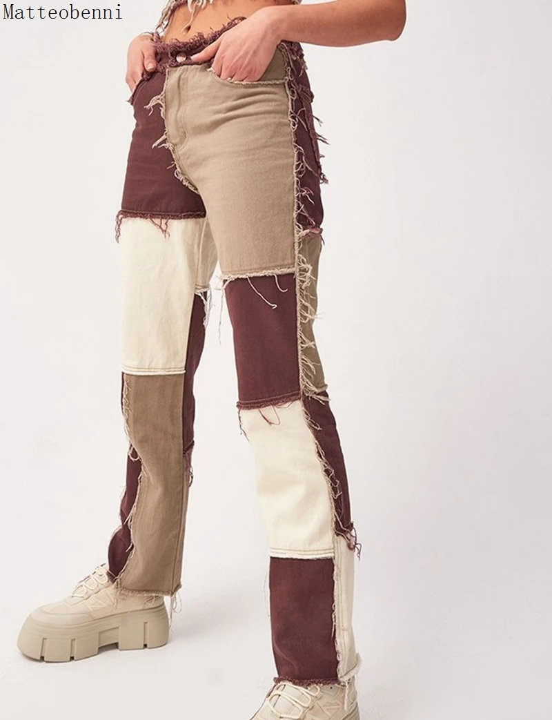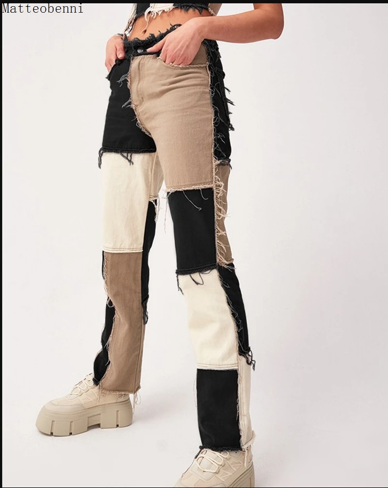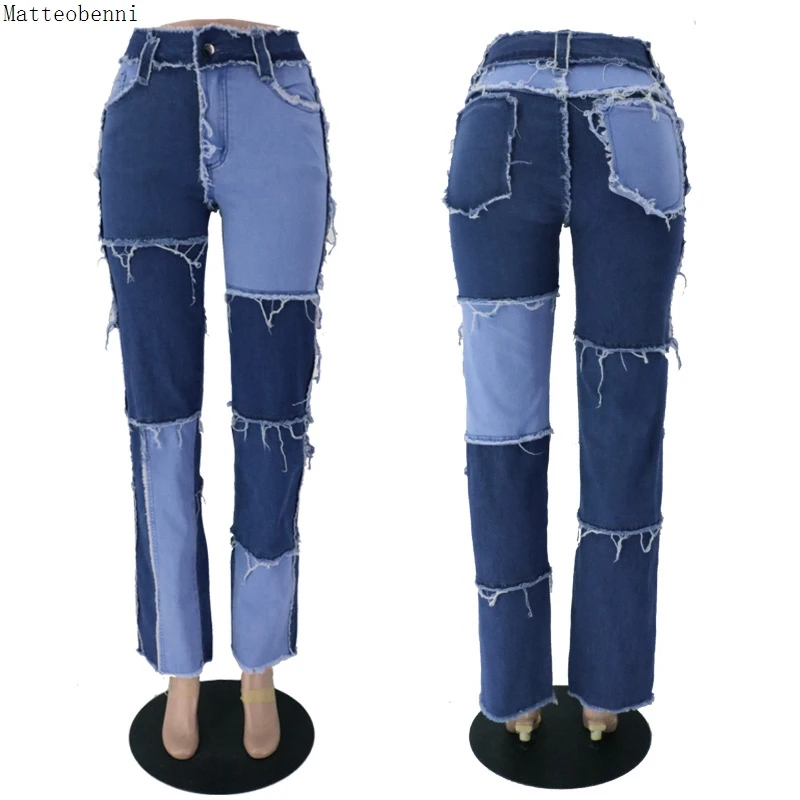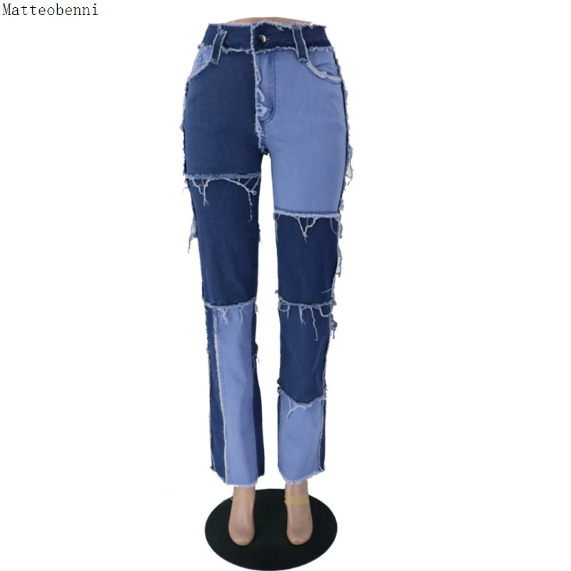 Джинсы женские прямые, составного кроя, с высокой талией и карманами, 2020
