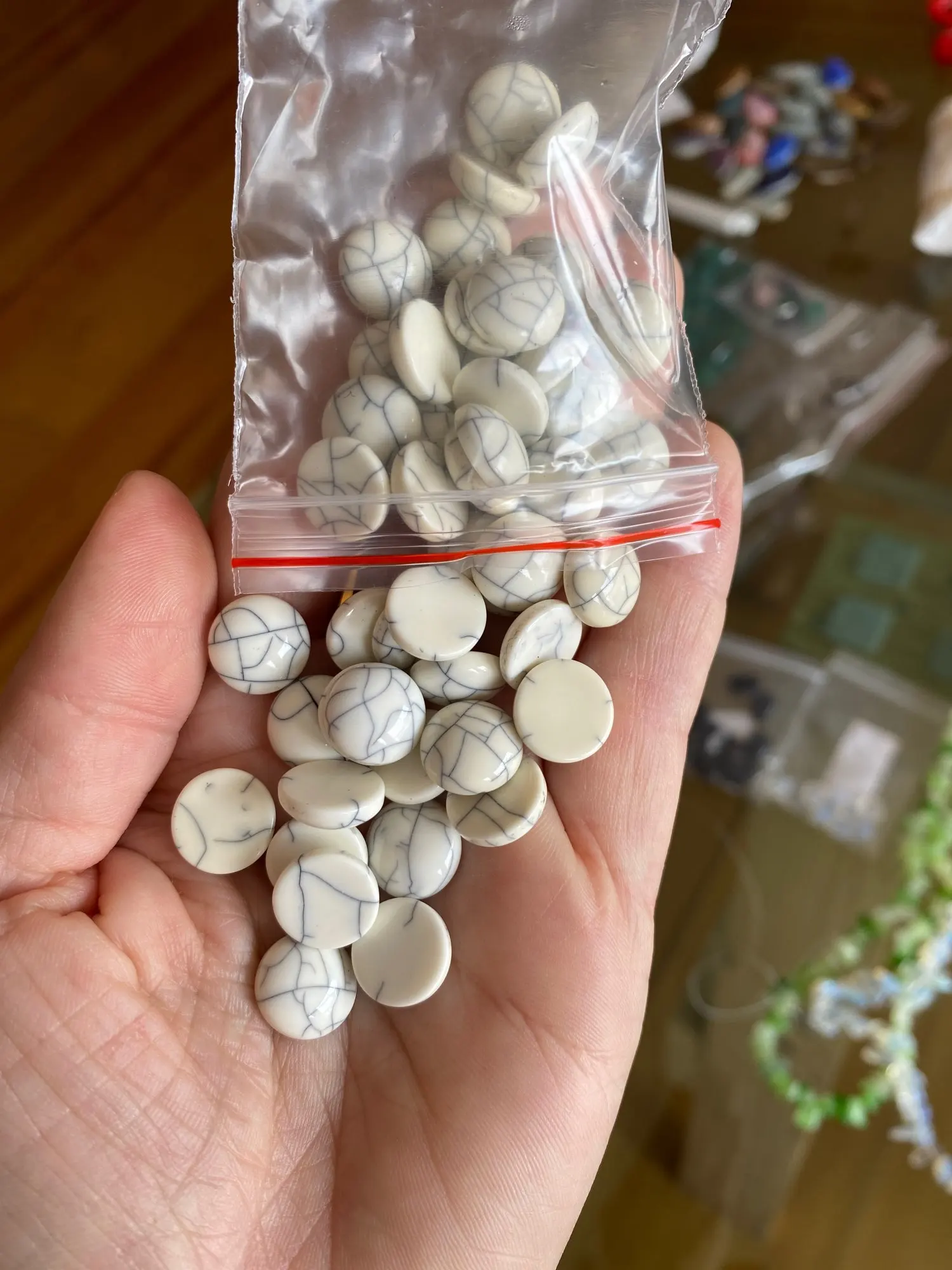 Пришли быстро, но они желтые уже! Не рекомендую! Извините, продавец, но товар не качественный, все кабошончики желтые! Как будто старые. Цвет на моем фото реальный, без изменений цветопередачи камерой. Кому то может и подойдет, но мне нужен был цвет как на фото продавца! Если продавец мне поменяет товар я изменю свой отзыв . возможно, просто, это партия была неудачной!