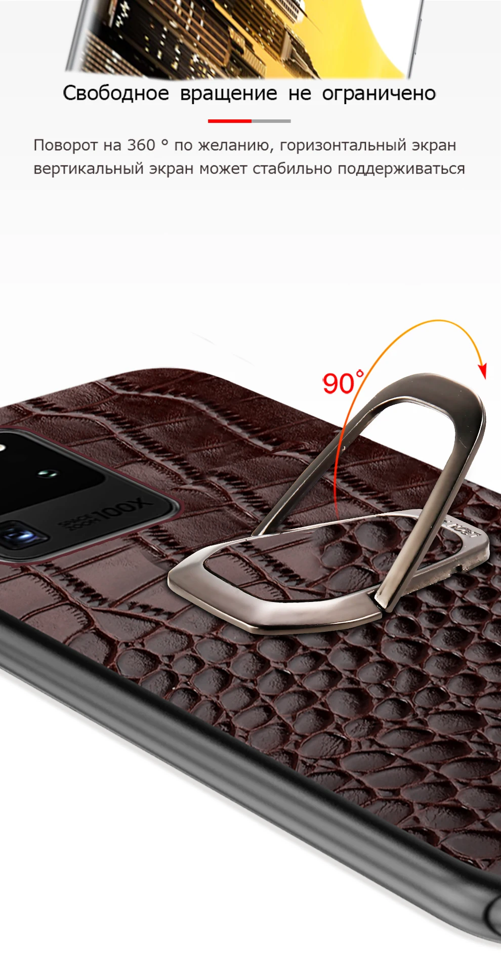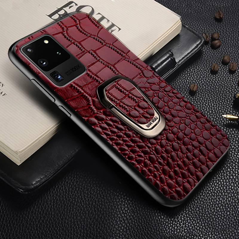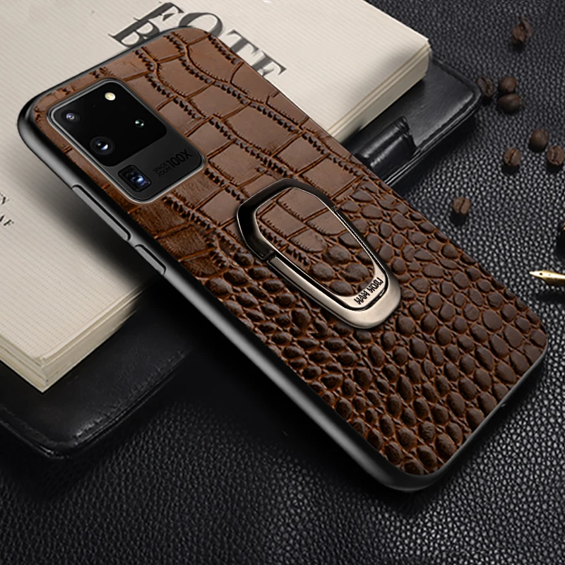 Чехол IKOLE для Samsung Galaxy с текстурой крокодила, чехол для телефона из натуральной воловьей кожи для моделей Samsung, 360 °, Мягкий противоударный чехол-накладка с кольцом и подставкой