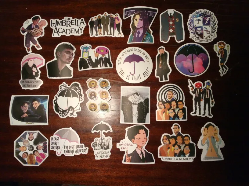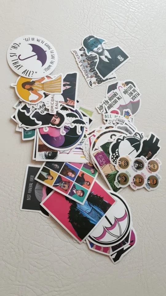 классные наклейки, пришли в течении 18-20 дней, все присутствуют (очень много Клауса, мало Пятого❤️) всем советую