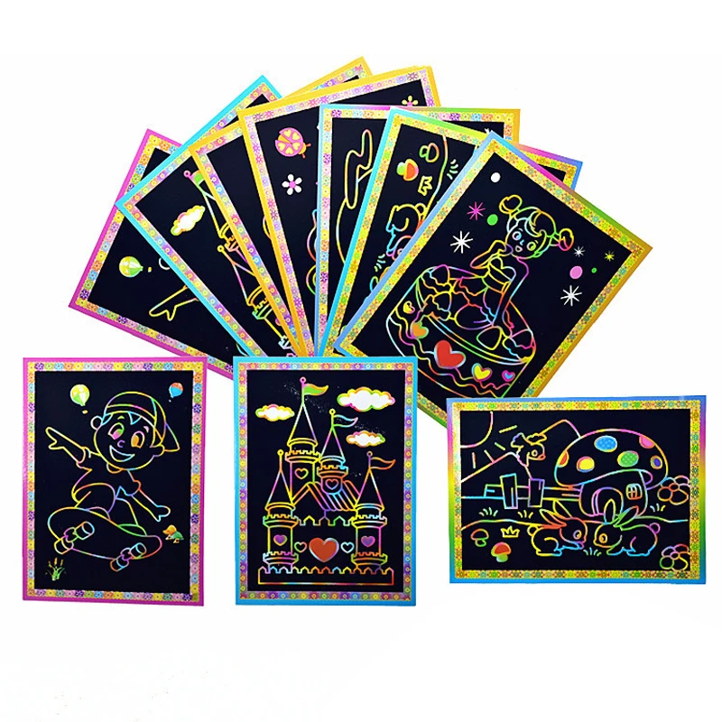 5 шт.компл. мультяшная цветная книга для царапин для детей творческая сделай сам Волшебная Радуга скоблящая бумага граффити картина открытка с палочкой