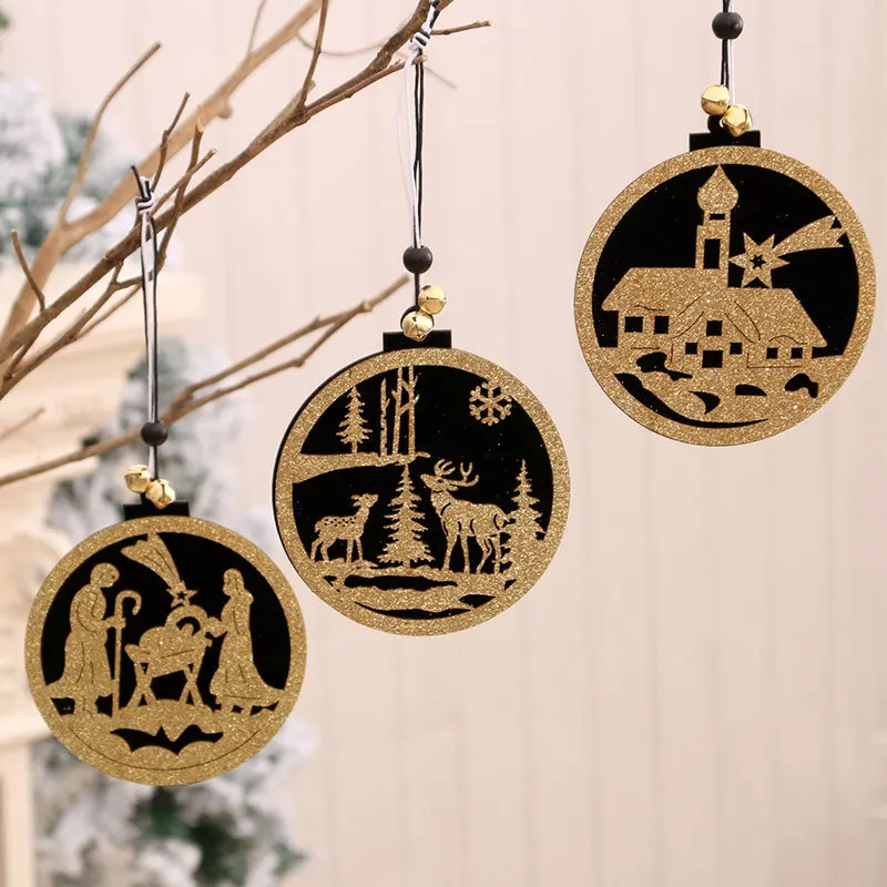 Рождественские деревянные подвески, рождественские украшения для ел...