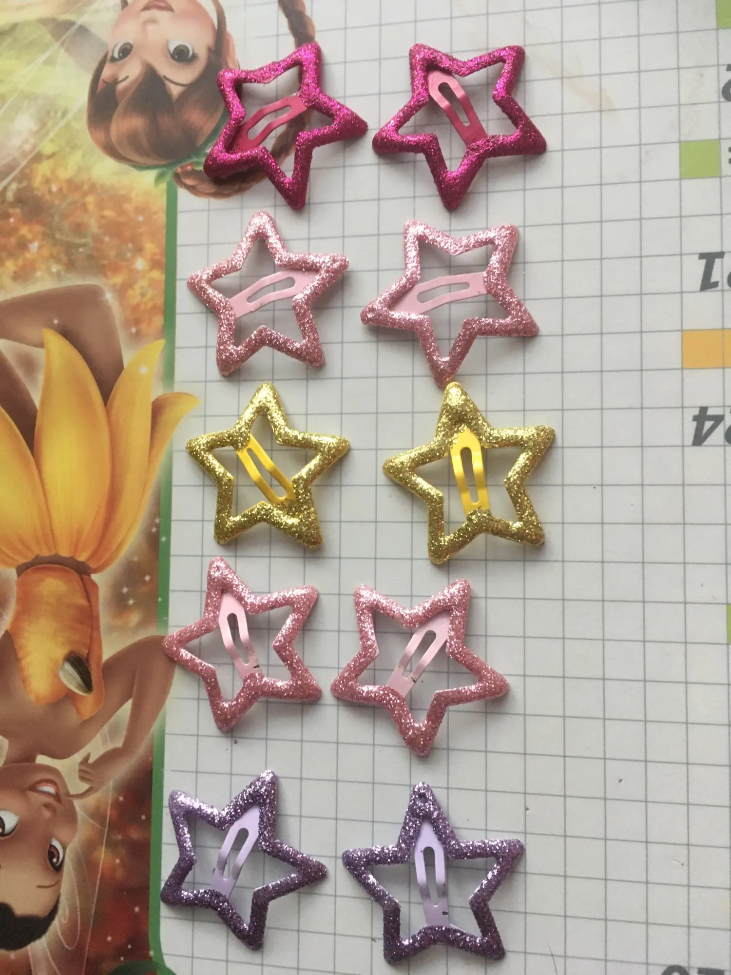 Заколка-пряжка для девочек, металлическая, с геометрическими звездами, Набор шпилек, для детей, заколки невидимки для волос