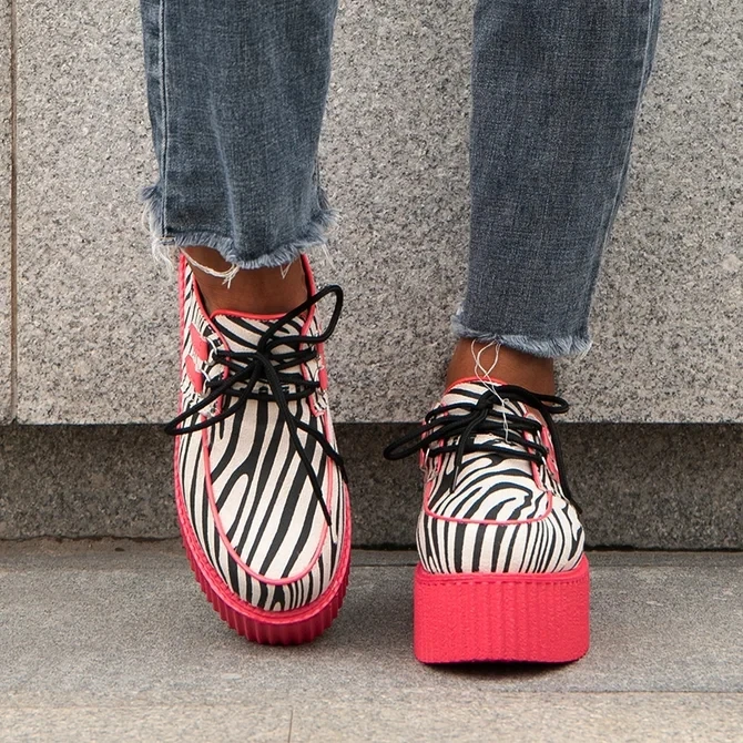 Женские замшевые туфли на платформе, повседневные туфли на толстой подошве в стиле панк, с принтом зебры, 2021