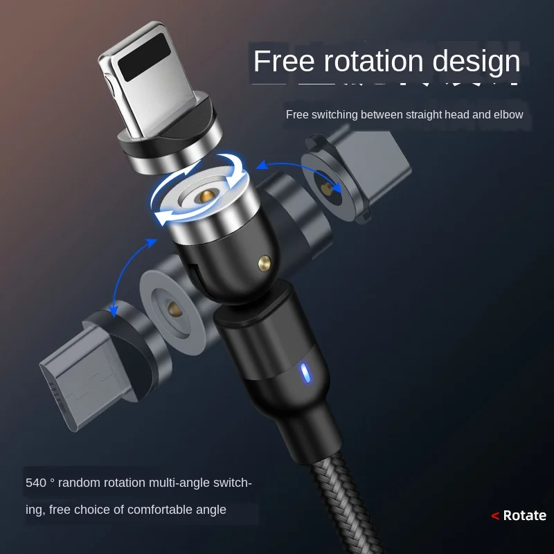 Вращающийся на 0,5 м Магнитный присоска Дата-кабель для зарядки 180 градусов 540 градусов Круглый Магнитный зарядный кабель для передачи данных