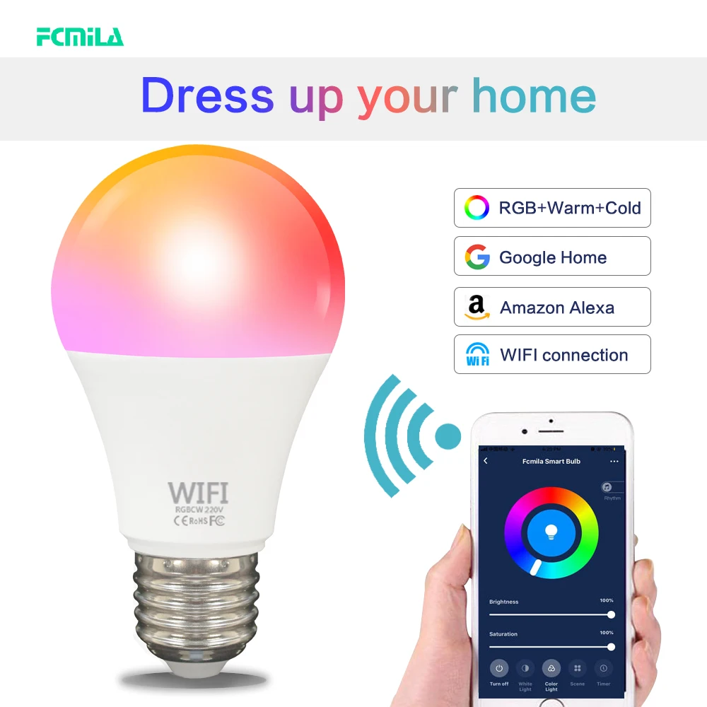 15 Вт WiFi умная лампочка RGB лампа с регулируемой яркостью E27 WiFi лампа накаливания Google Home Cloud Intelligence 85-265 в