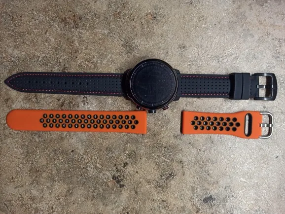 приятный силикон. прямой в отличие от родного. по этому часы кладуться лицевой вверх. ехало 2 месяца. в месте крепления чуть тоньше оригинала и ощущение перехода часов в ремешок пропадает
