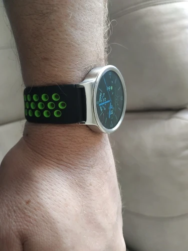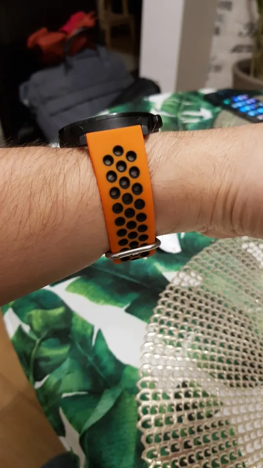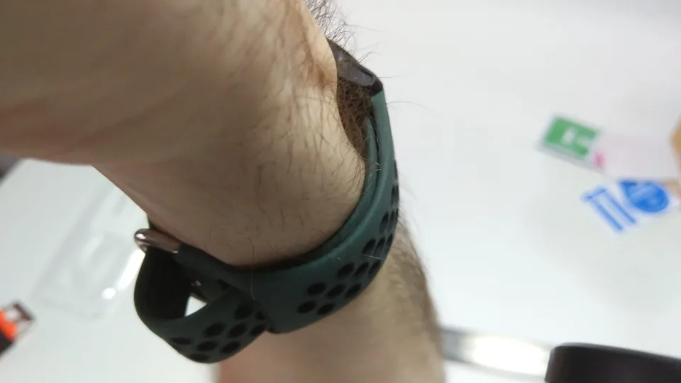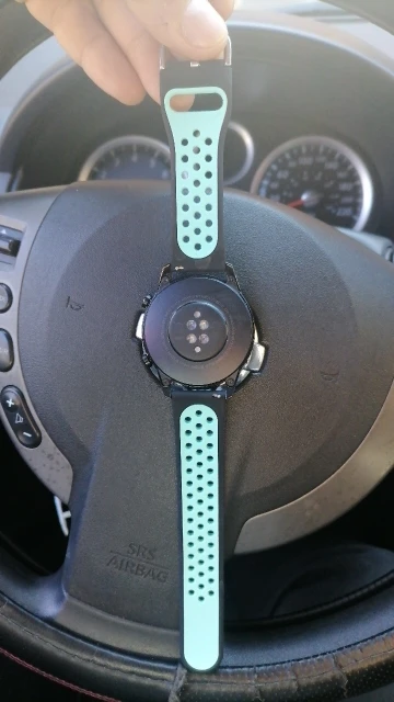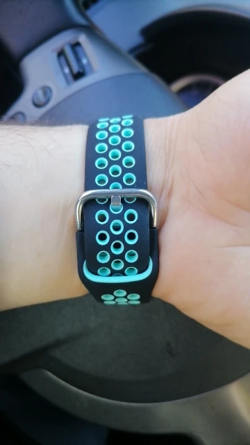 Ремешок обалденный, уже, чем штатный, сидит лучше, края скруглённые - не давит, смотрится хорошо. Нет этих ободков в которые заправляют и которые давят на руку - заправляется под ремешок и ничего не болтается. Мягче, чем штатный. В общем, его не ощущаешь на руке. Цвет на самом деле голубо-бирюзовый, а не голубой, как на фото. В отзывах есть фото, где цветность более правдивая.